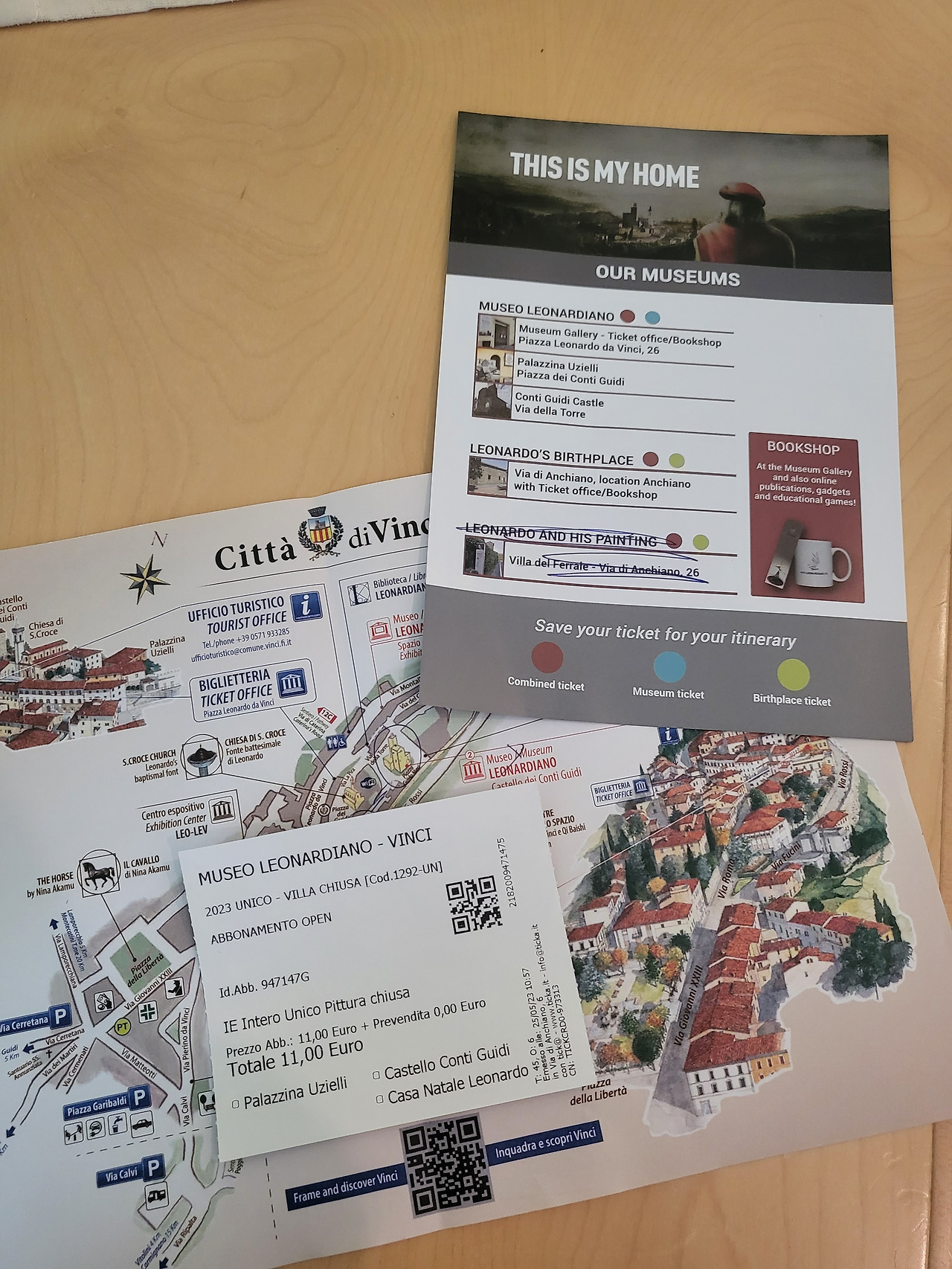빈치 마을에 있는 레오나르도 박물관을 함께 볼 수 있는 콤보 티켓을 구입하였다.