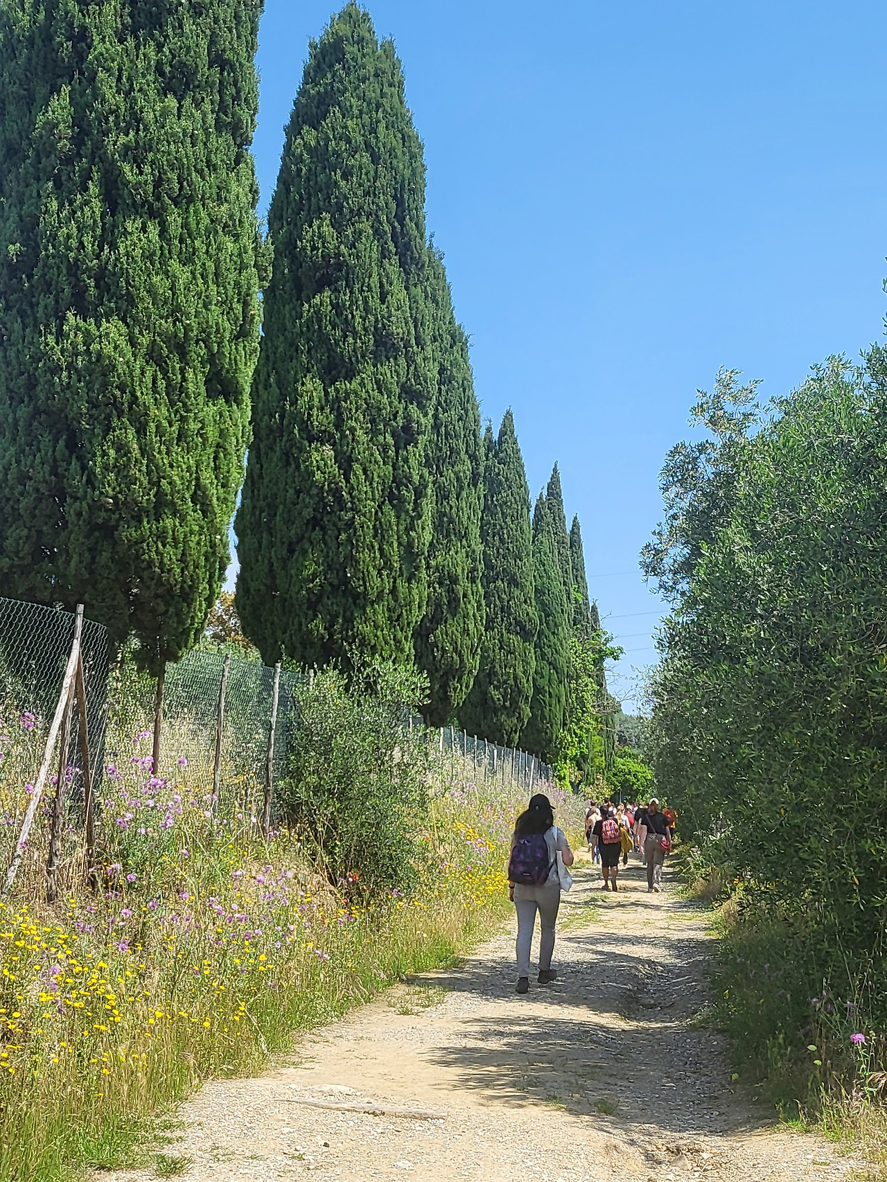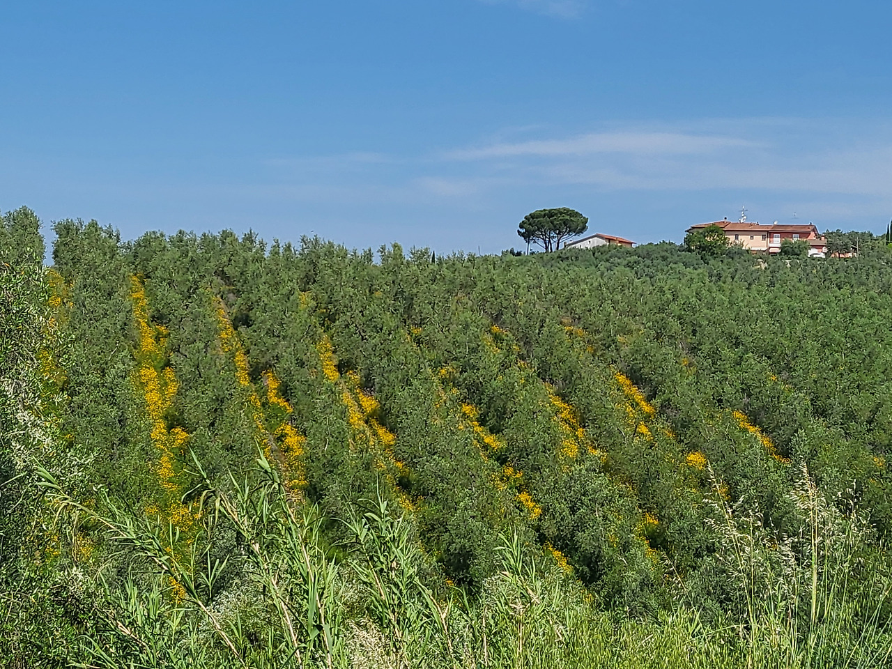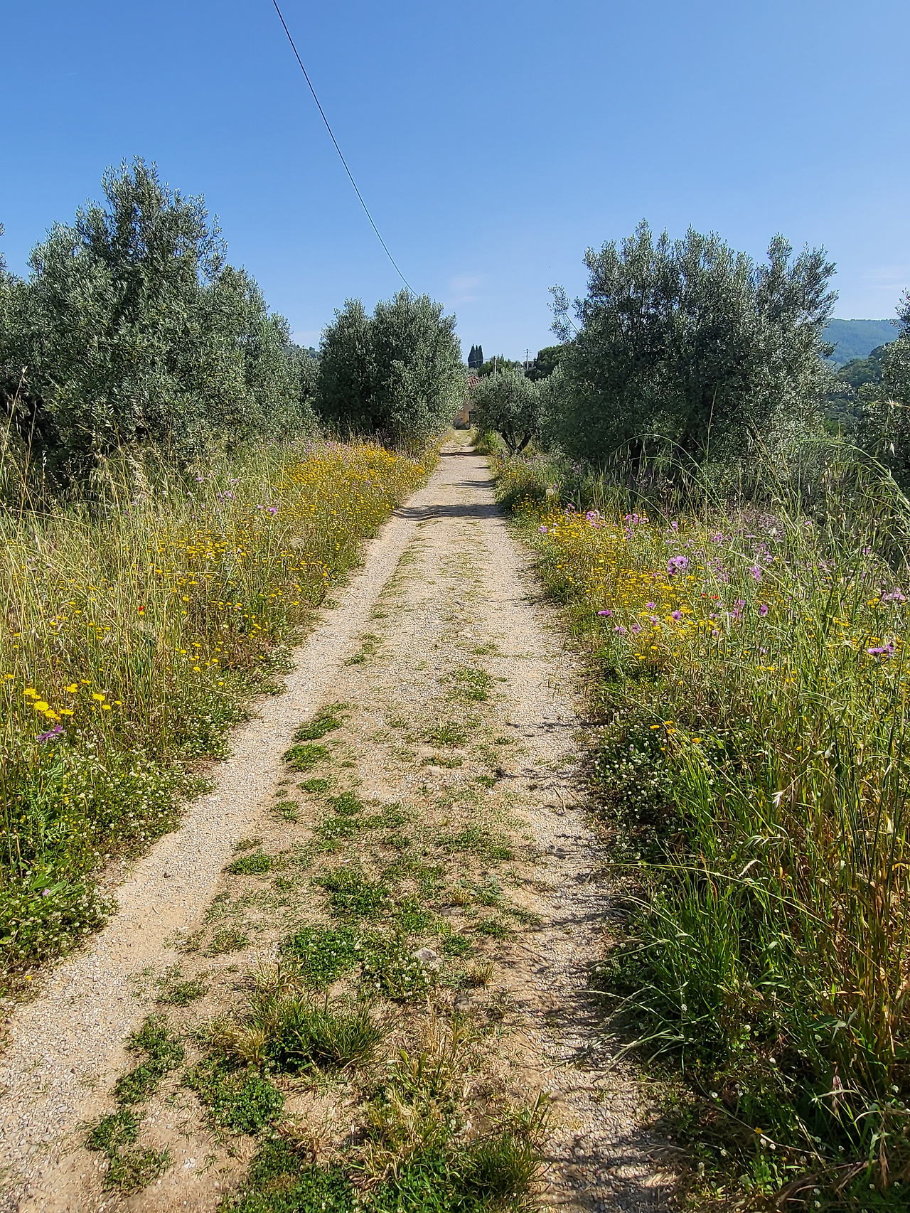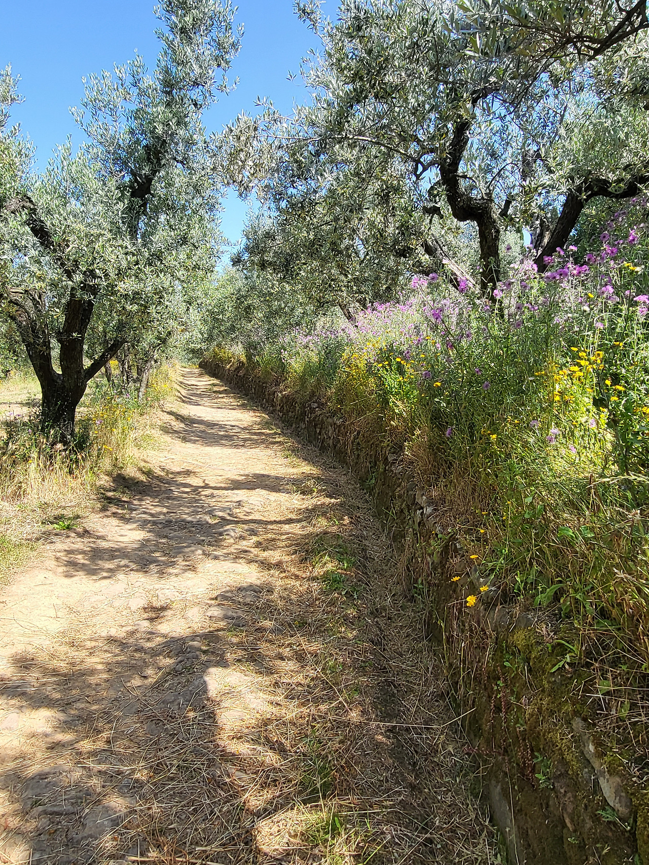 커다란 올리브 나무밭과 포도밭, 농가 몇 채를 지나니 조붓한 산길이다.