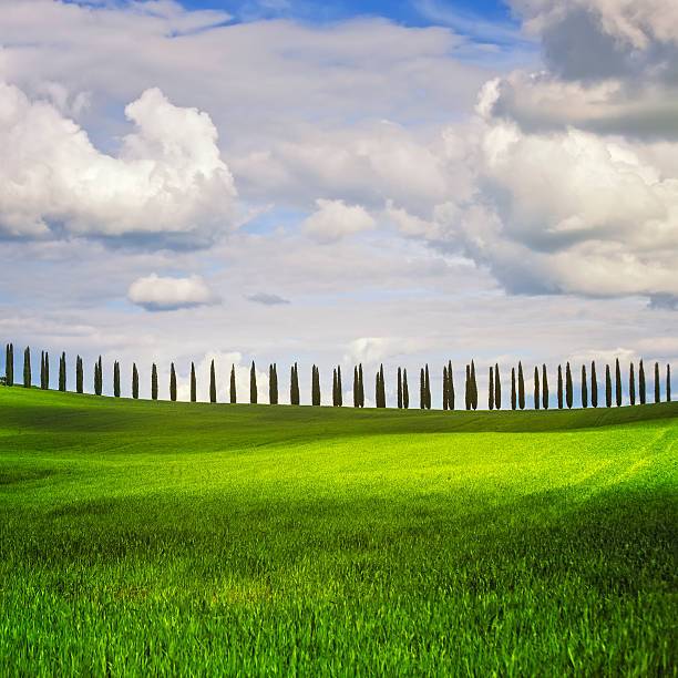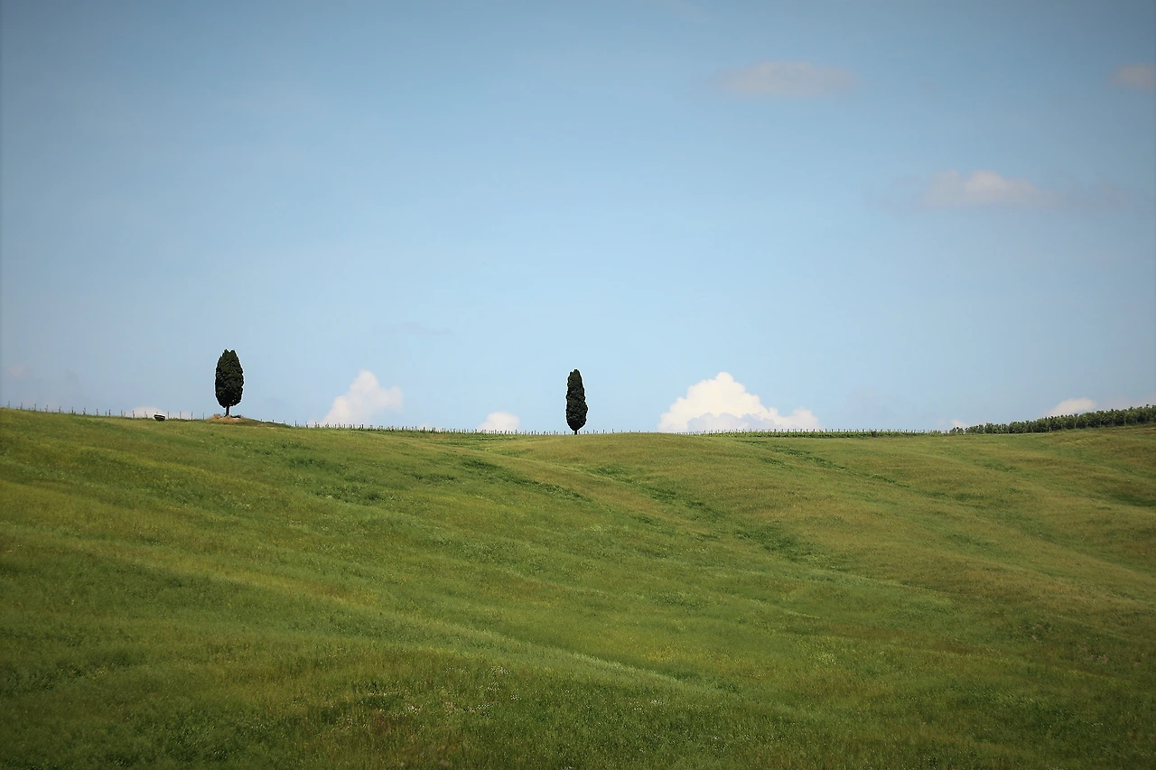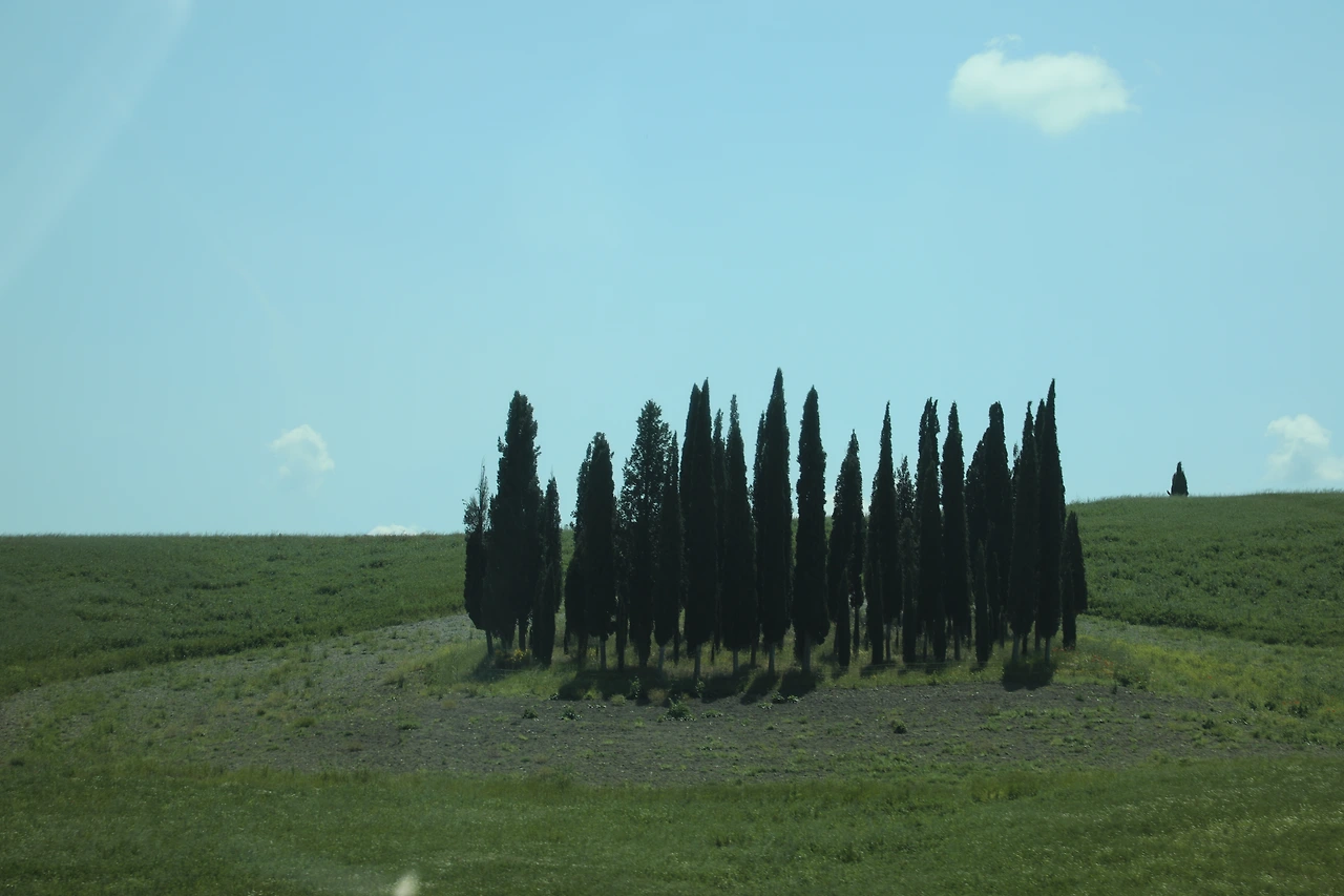 온통 초록초록한 들판 위에 싸이프러스들이 드문드문 서 있는 풍경이 나타났다.