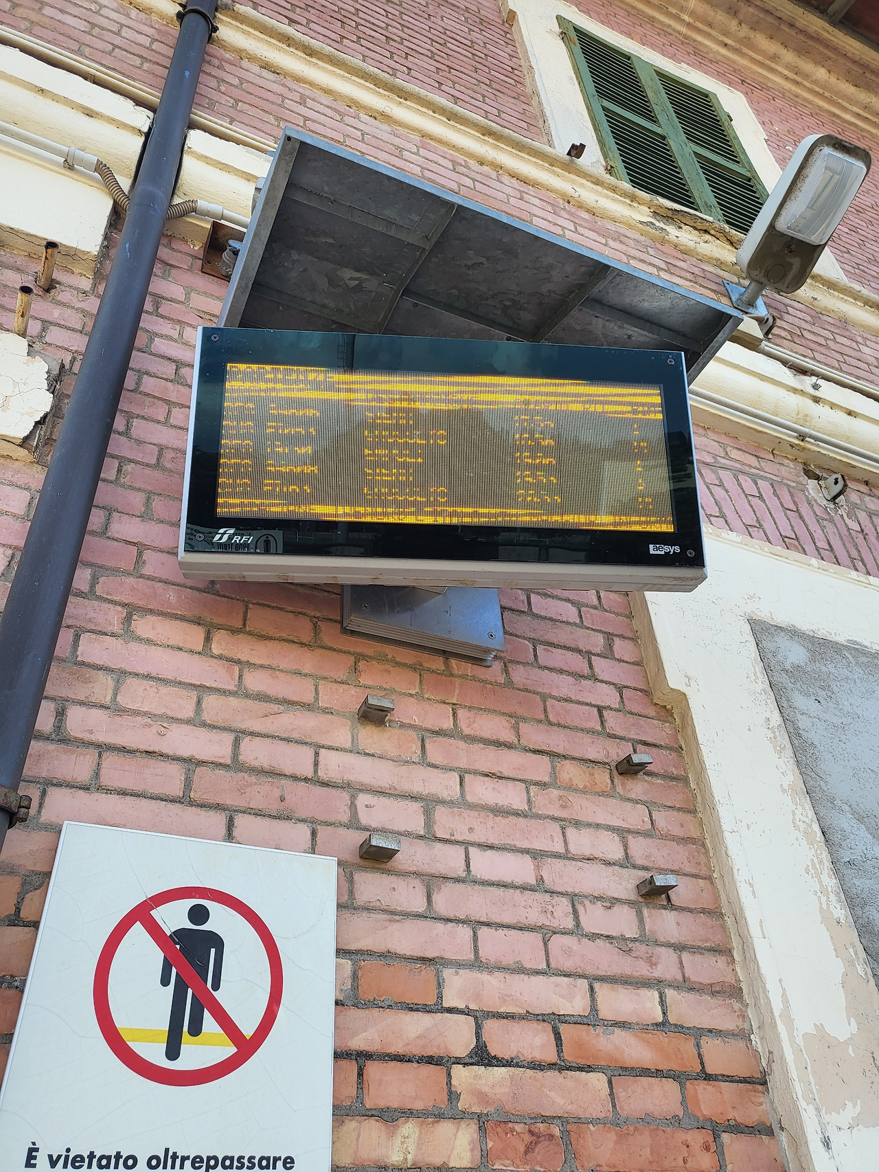 내가 타려고 하는 시에나 행 기차 시간표 옆에 뭔가 빨간 글씨가 쓰여있는데 영어 cancel과 비슷했다.