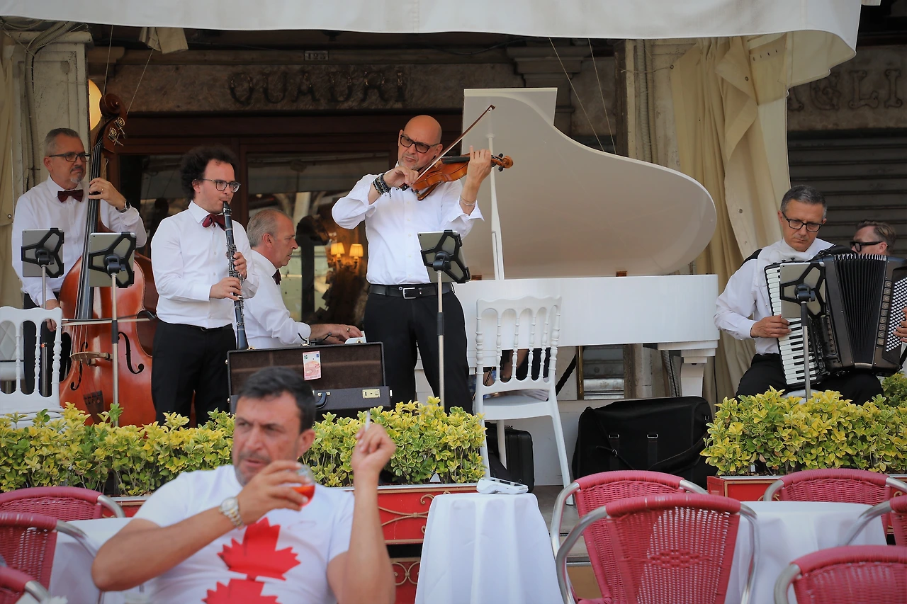 산 마르코 광장의 꽃, 카페 플로리안에는 하얀 턱시도를 입은 악사들이 대부의 테마곡을 연주하고 있다.