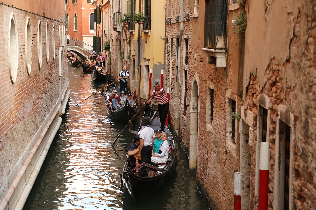 좁은 수로에는 앞으로 나아가지 못하는 곤돌라들이 교통 체증을 겪고 있는 모습이 자주 보였다.