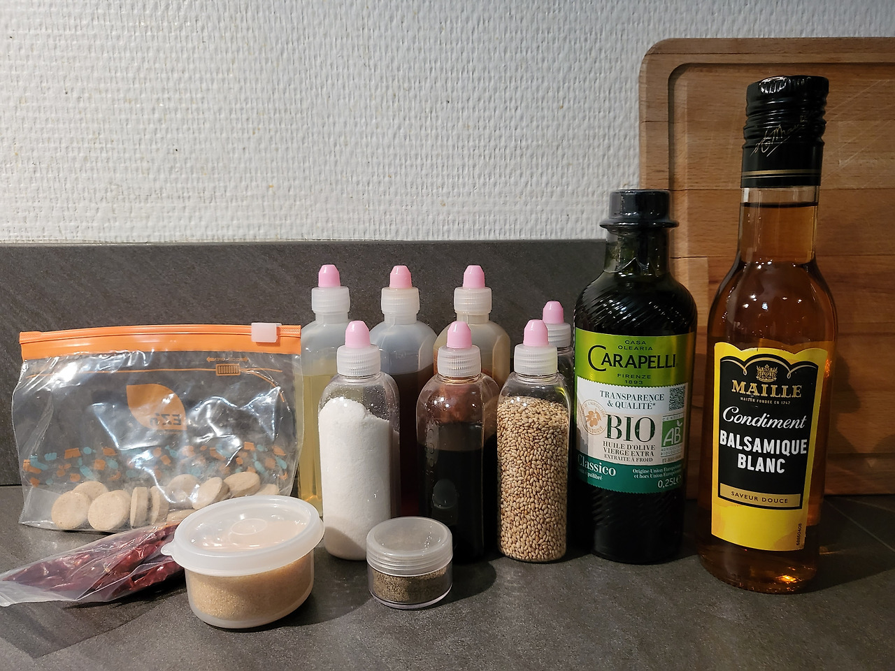 집에서 준비해 간 기본양념과 올리브 유, 발사믹