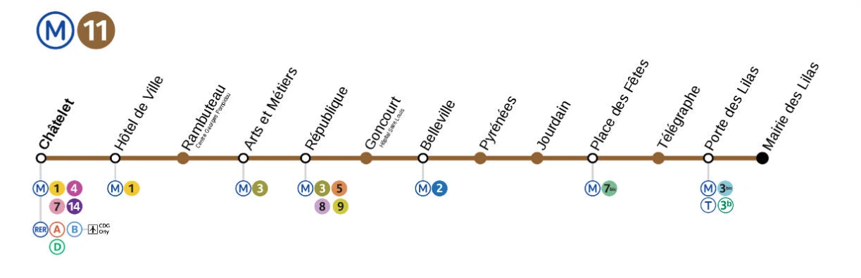 종착역은 샤틀레, 파리의 중심지고 5개의 메트로가 환승되는 곳이라 편리합니다.
