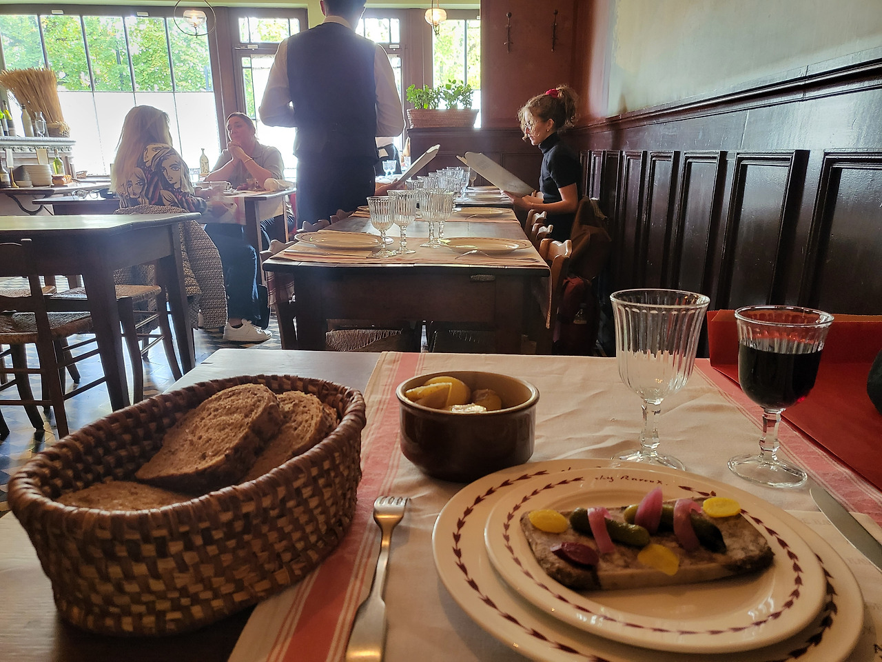 그야말로 삶은 감자 몇 알이 투박한 옹기그릇에 담겨있고 거친 호밀빵은 나무 바구니에 담겨서 나왔어요.