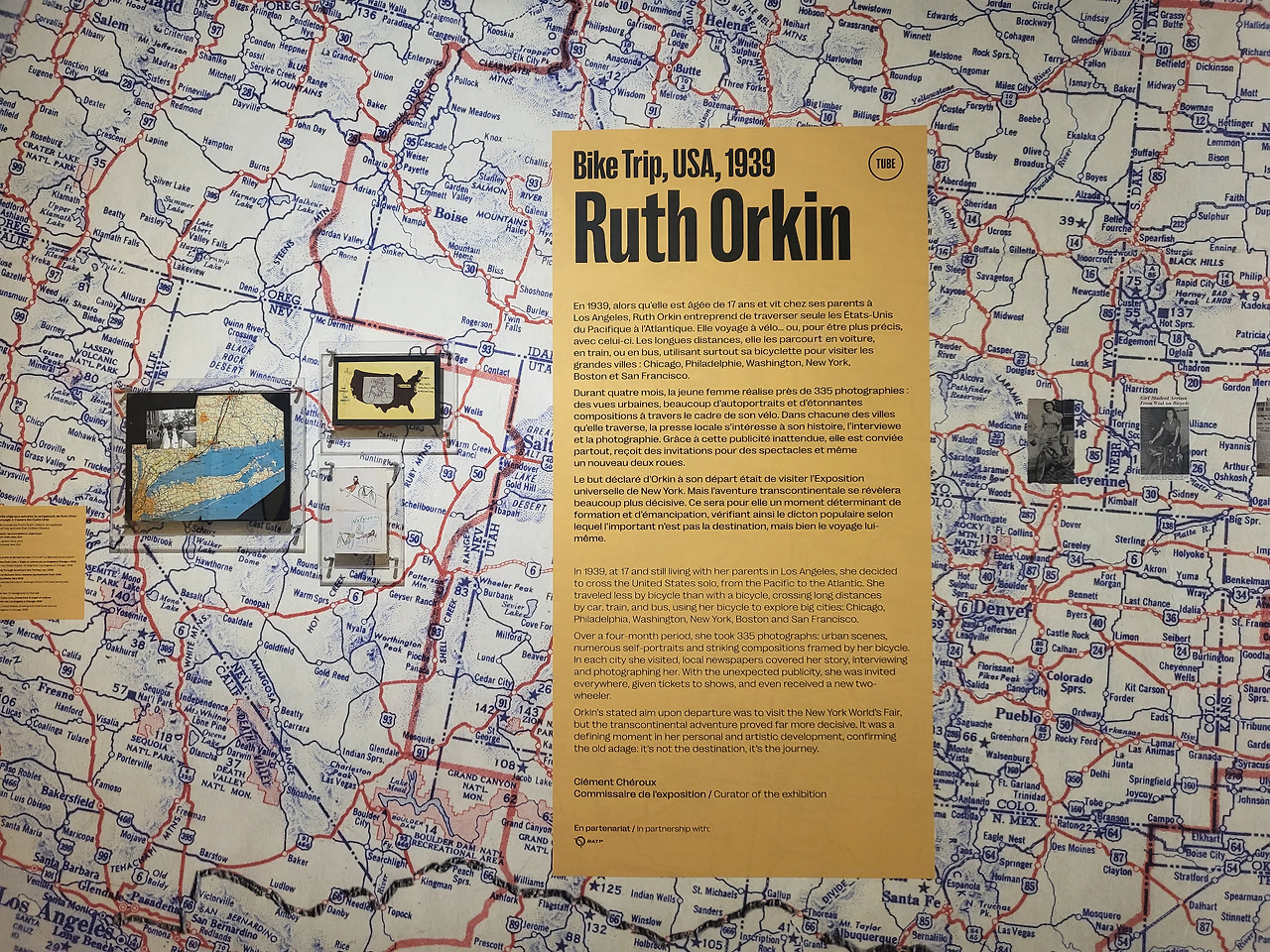 이번 전시회에는 이 모험에 관한 Ruth Orkin의 원고를 포함하여 약 40장의 사진과 보관 문서가 함께 전시되어 있습니다.