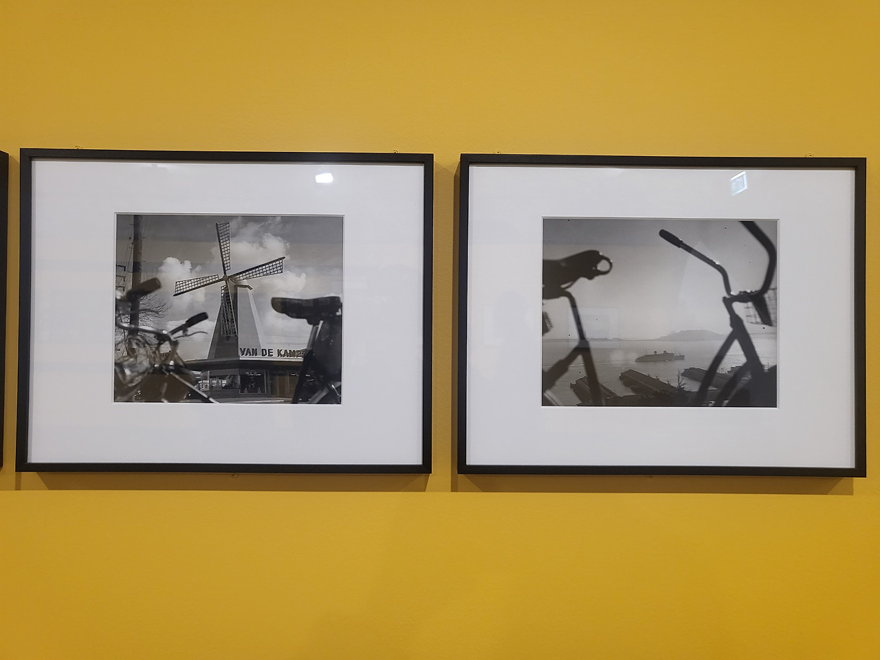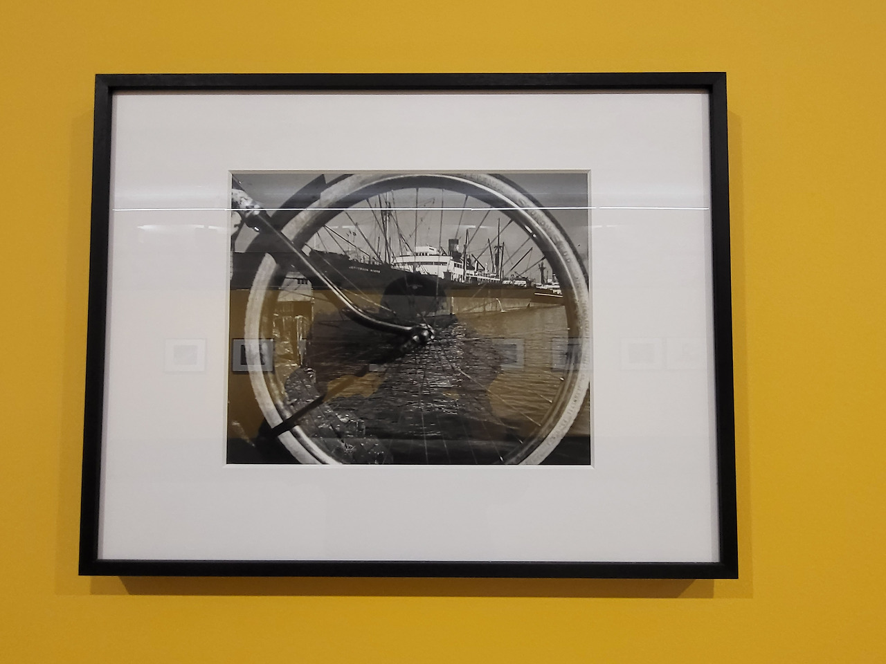 사진 위에 다른 사진 액자 다섯 개가 걸려있음(앙리 카르티에 브레송 재단 전시실)