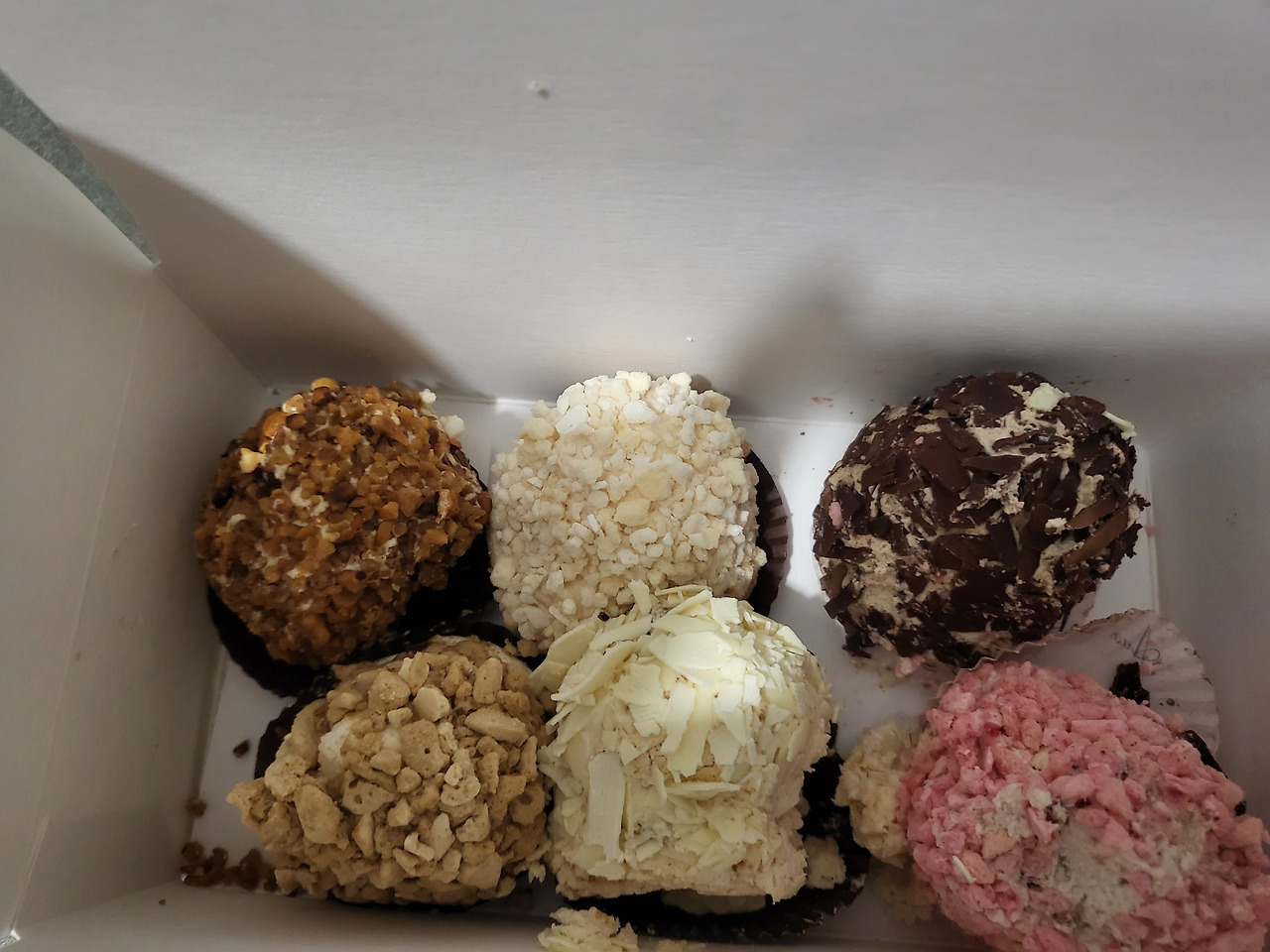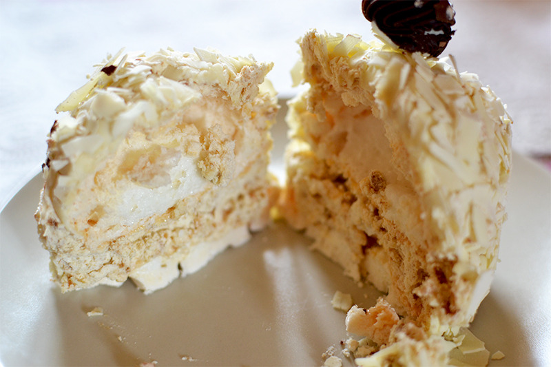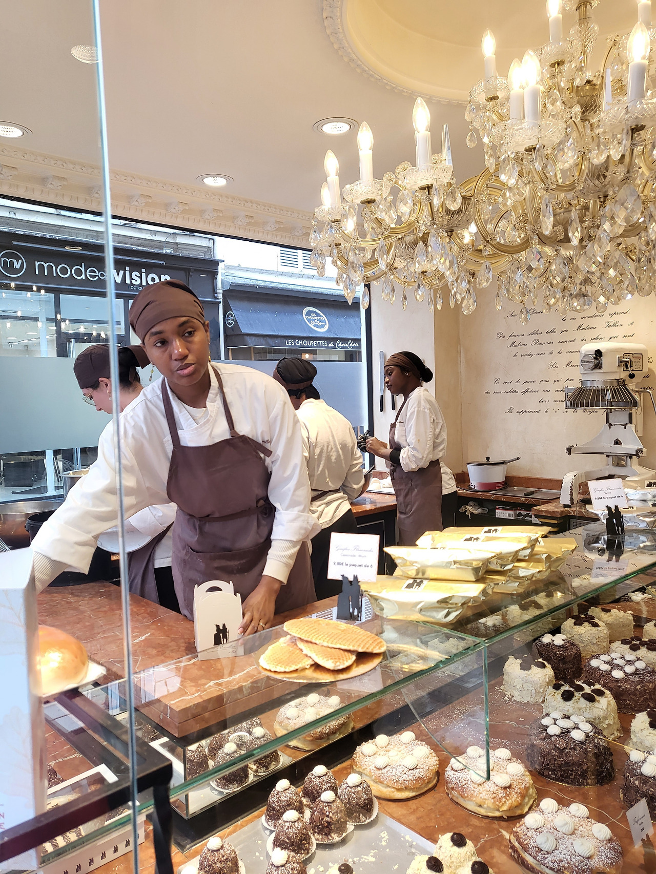 카페에 가는 대신 디저트 가게 오 메흐비요 드 프레드(Aux Merveilleux de Fred)에 들러 달걀흰자에 거품을 내어 오븐에 구워 만든 머랭위에 가볍고 잘잘한 크림 부스러기로 감싸 만든 쁘띠 디저트 6가지 맛(다크 초콜릿, 화이트 초콜릿/스펙쿨루스, 커피, 프랄린, 캐러멜, 체리)을 샀습니다.