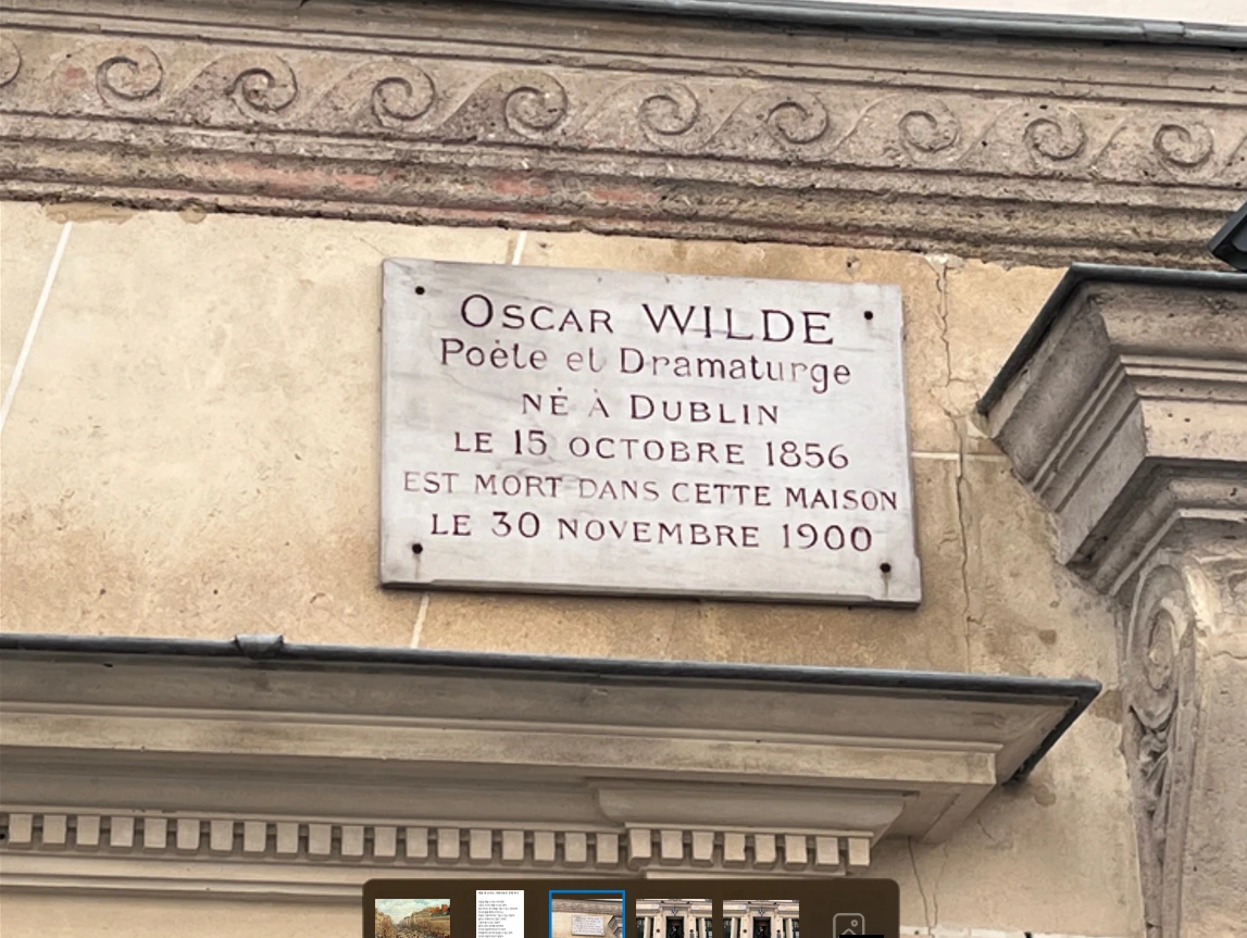 '시인이자 극작가 오스카 와일드, 1900년 11월 30일 이곳에서 사망했습니다.'