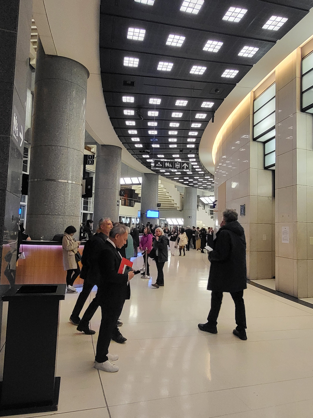 모피 코트 속에 이브닝드레스를 입은 사람부터 아웃도어 재킷에 청바지를 입은 사람까지 관람객의 복장은 천차만별입니다.
