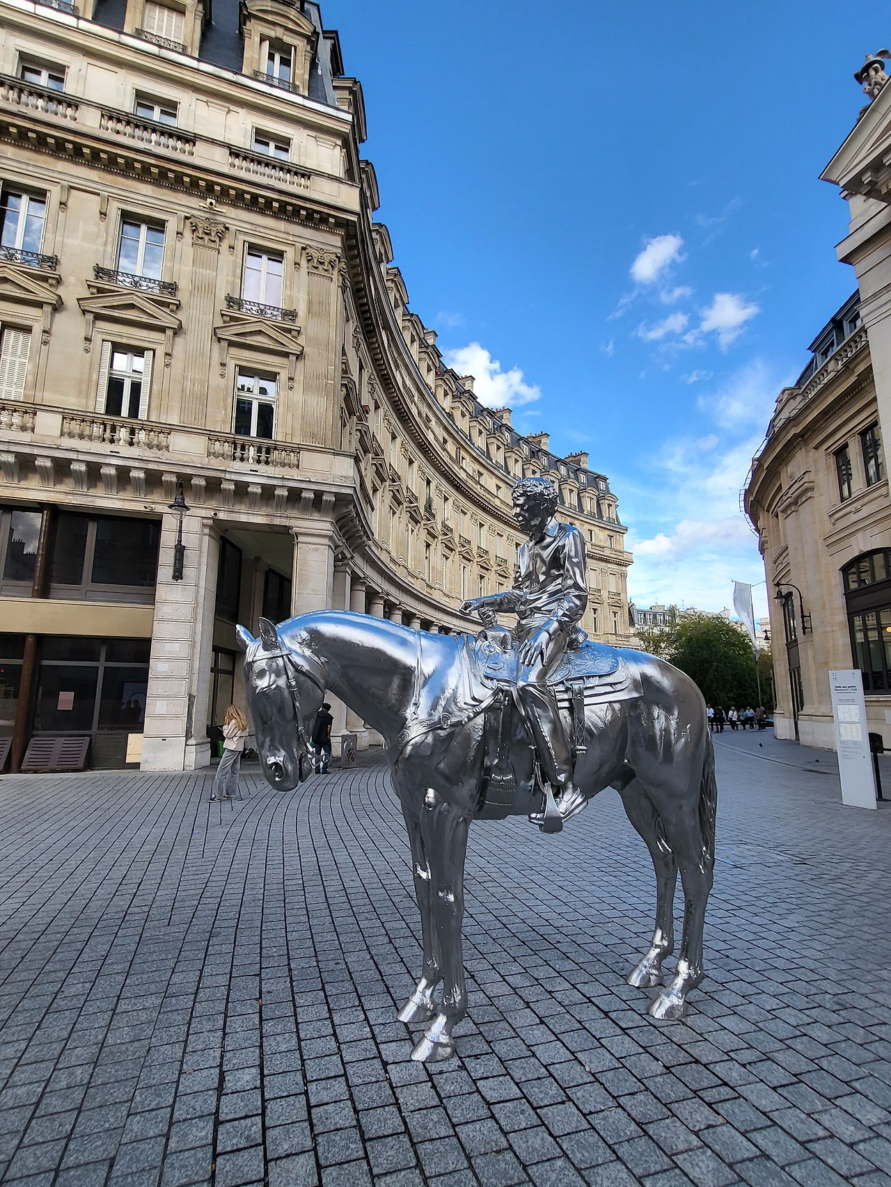 입구에는 미국 작가 찰스 레이(Charles Ray)의 작품 '말과 기수'라는 제목의 은색 조각이 설치되어 있었습니다.