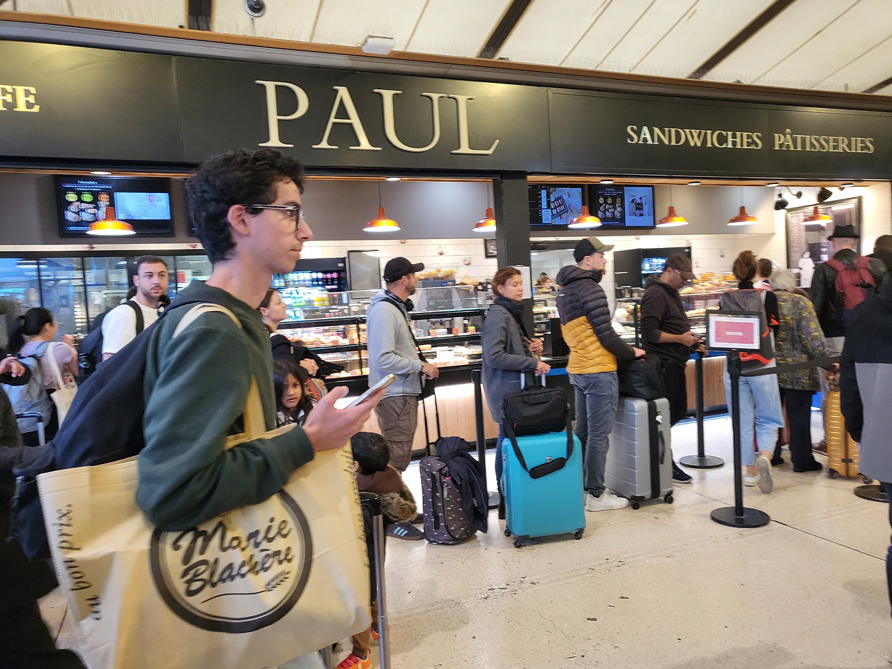 연착으로 늦게 도착하는 사람들과 파리를 떠나려는 사람들이 꼬리에 꼬리를 물고 거의 떠밀려 다니는 수준이었어요.