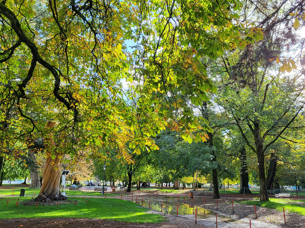 물웅덩이에 비친 나뭇잎이 햇빛을 받아 반짝이고 장성한 딸의 사진을 찍어주는 엄마, 무등을 태우고 지나가는 젊은 아빠, 그저 모두 편안해 보입니다.