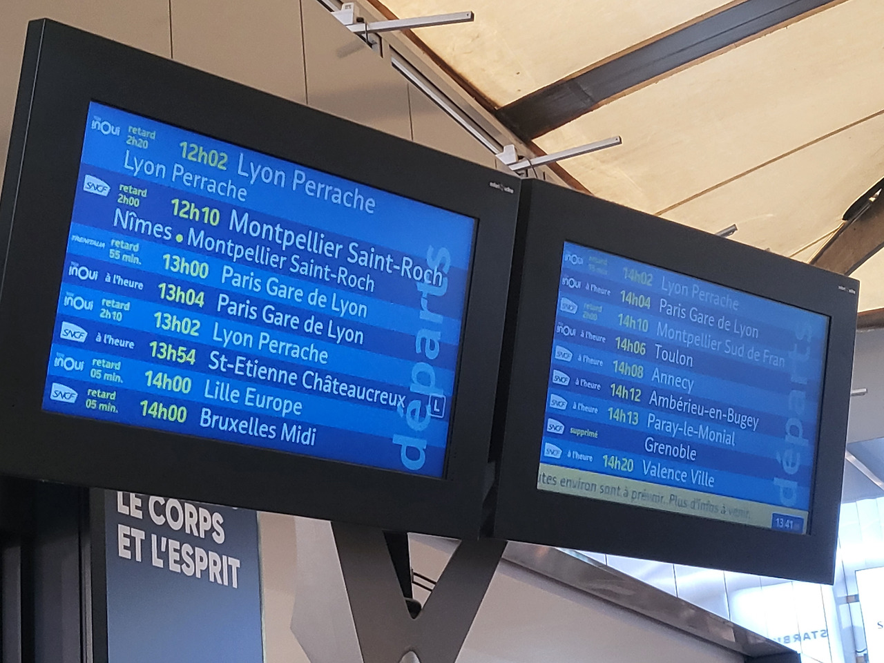 리옹에서 출발 예정인 기차들의 시간표에는 연착 시간이 줄줄이 도배가 돼있다시피 하더군요.