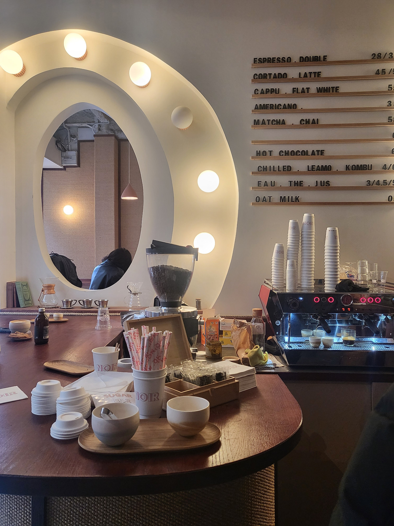 '느와르'라는 이름의 간이 카페로 들어갔습니다.