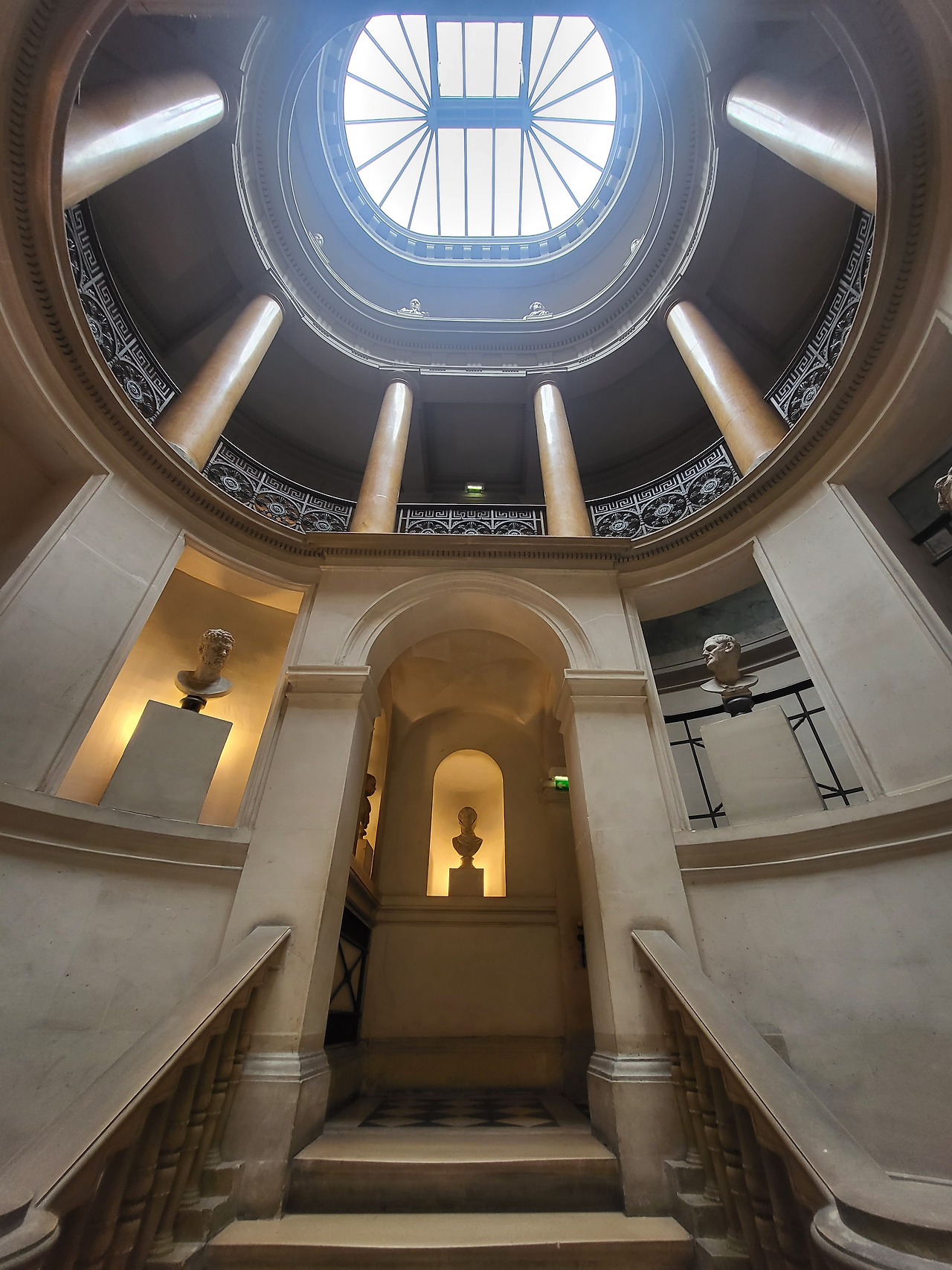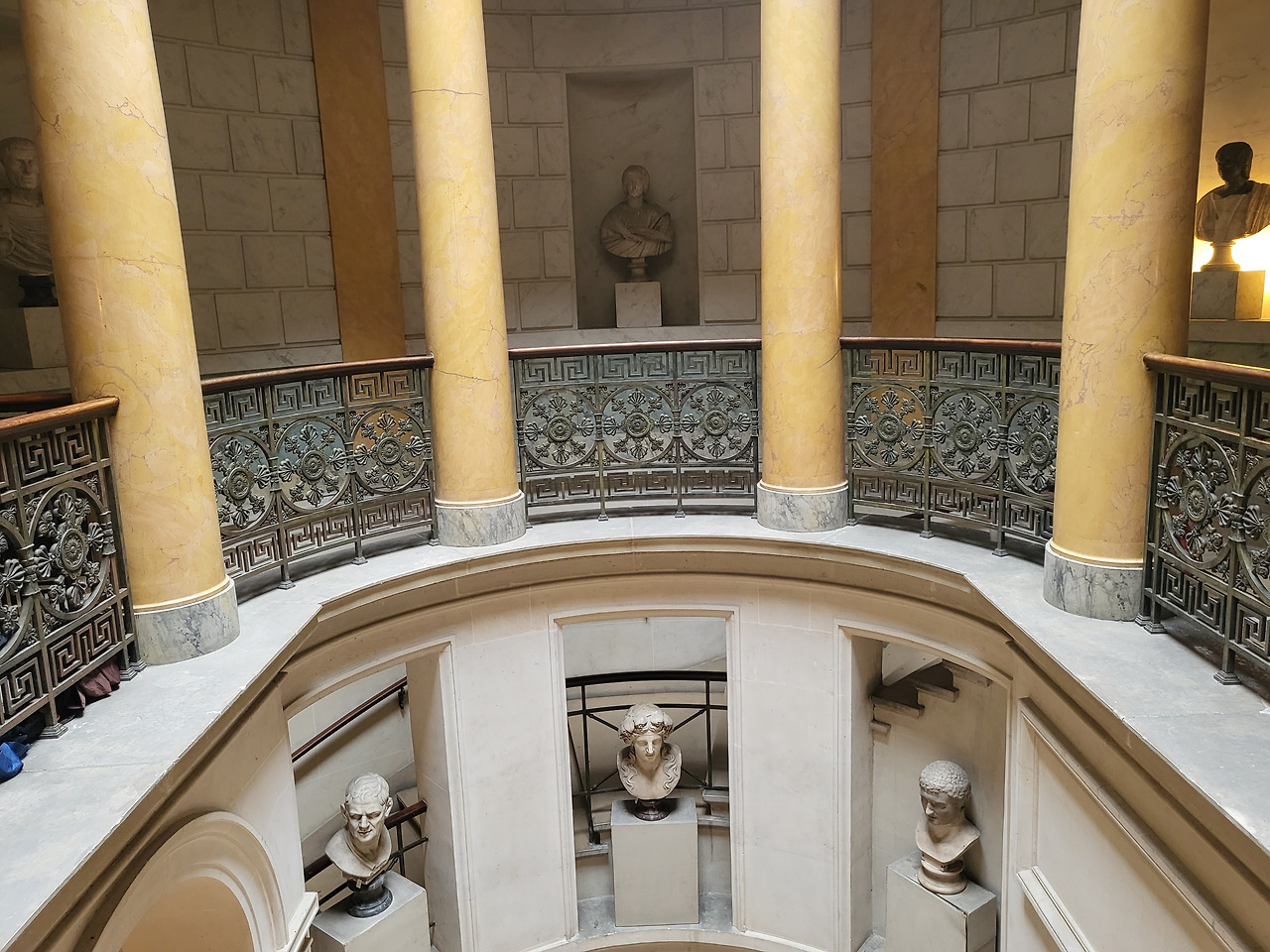 1층과 2층 난간에 프랑스를 대표하는 위인들의 흉상이 놓여있음