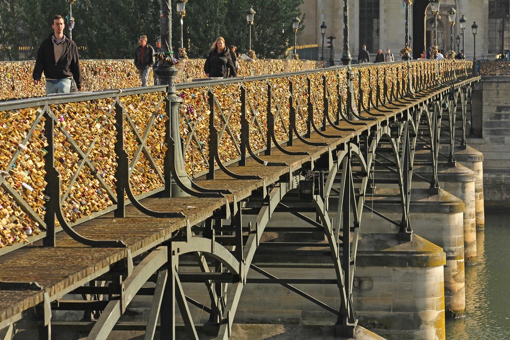 전 세계에서 몰려든 연인들은 영원한 사랑을 맹세한 이니셜이 적힌 자물쇠를 다리의 철재 난간에