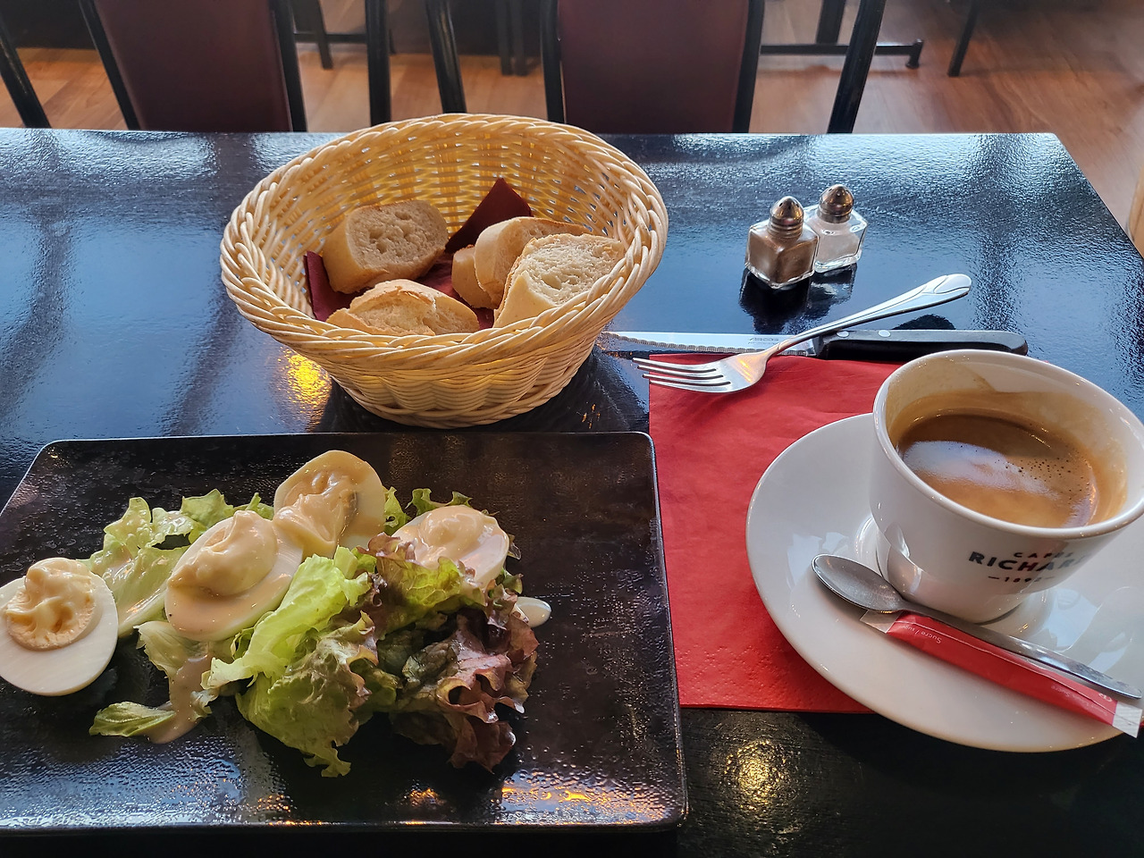 성당 앞 작은 광장 벤치에서 버터와 오렌지 마말레이드, 치즈를 넣은 비게트 샌드위치와 둥굴레차로 점심 식사를 했지요.