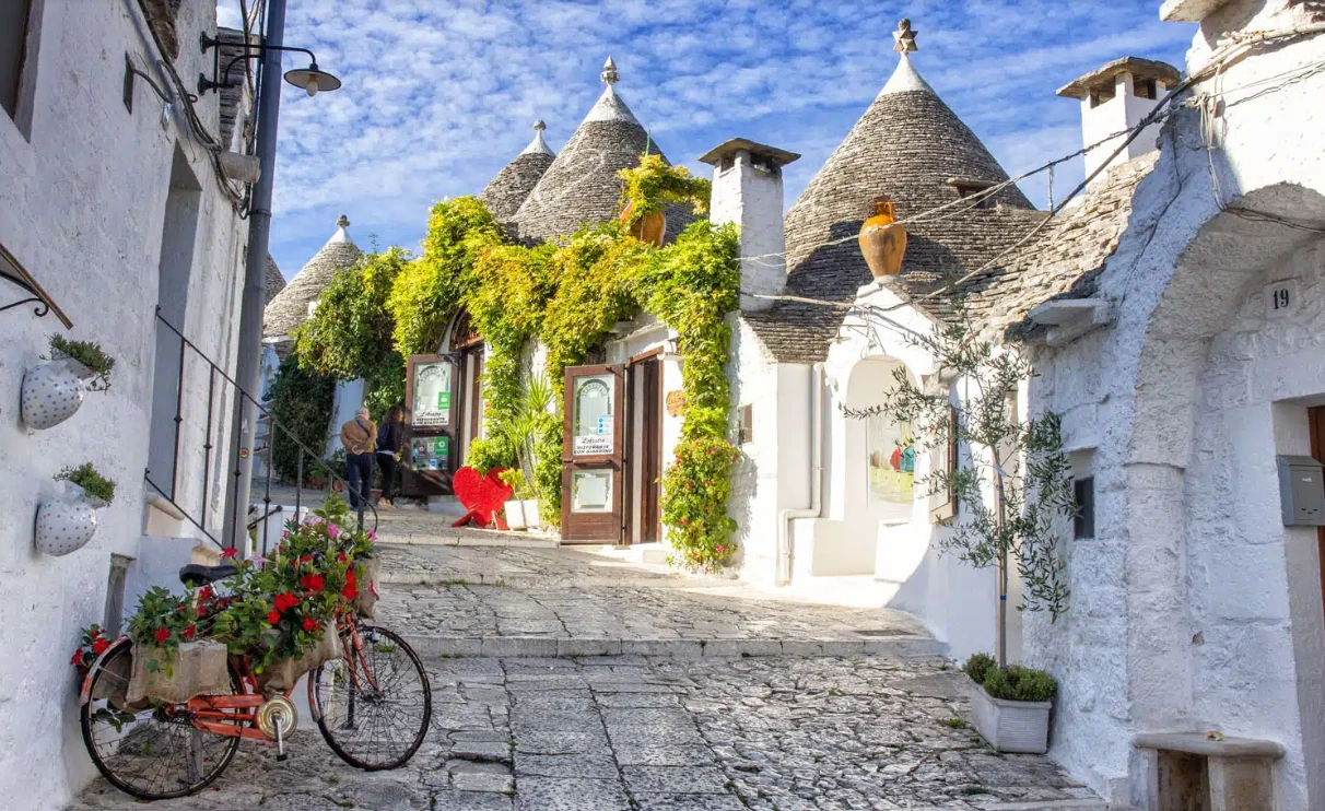 원추형 또는 피라미드 모양의 지붕 모양의 석조 건축 트룰리들이 1500개 이상 모여있는 알베로벨로는 유네스코 세계문화유산에 등재된 곳이지요.