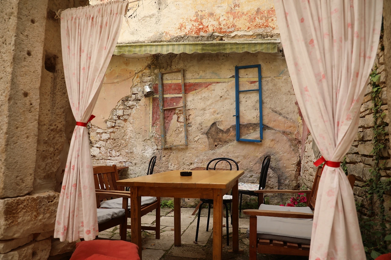 돌이 튀어나오거나 자연스레 벽이 뜯겨 나간 질감, 자칫 딱딱해 보일 수 있음을 커버하는 방석과 용도가 불분명한 커튼 등이 신의 한 수였다.