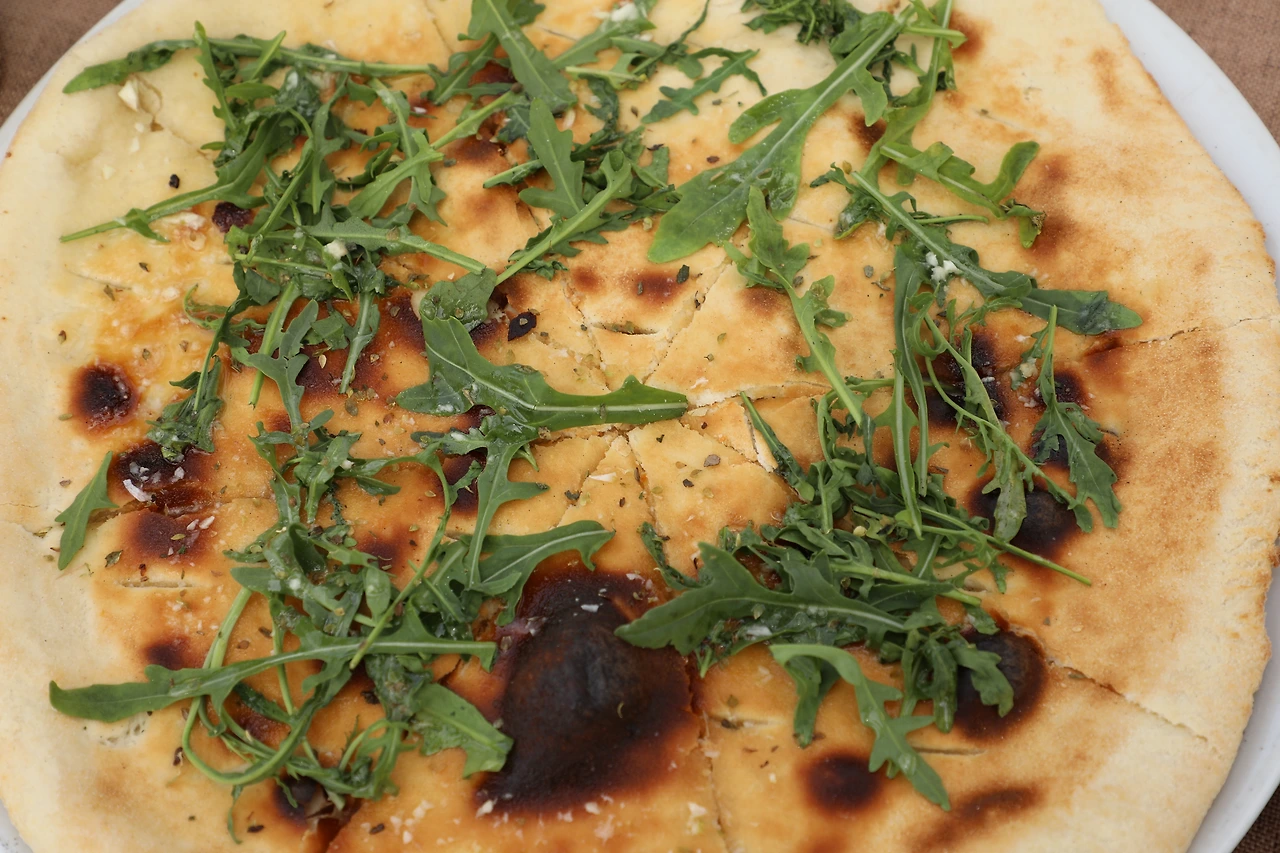 서비스로 준 루꼴라 피자에 올리브 오일을 듬뿍 뿌려 먹으니 그 또한 담백하며 고소하다.