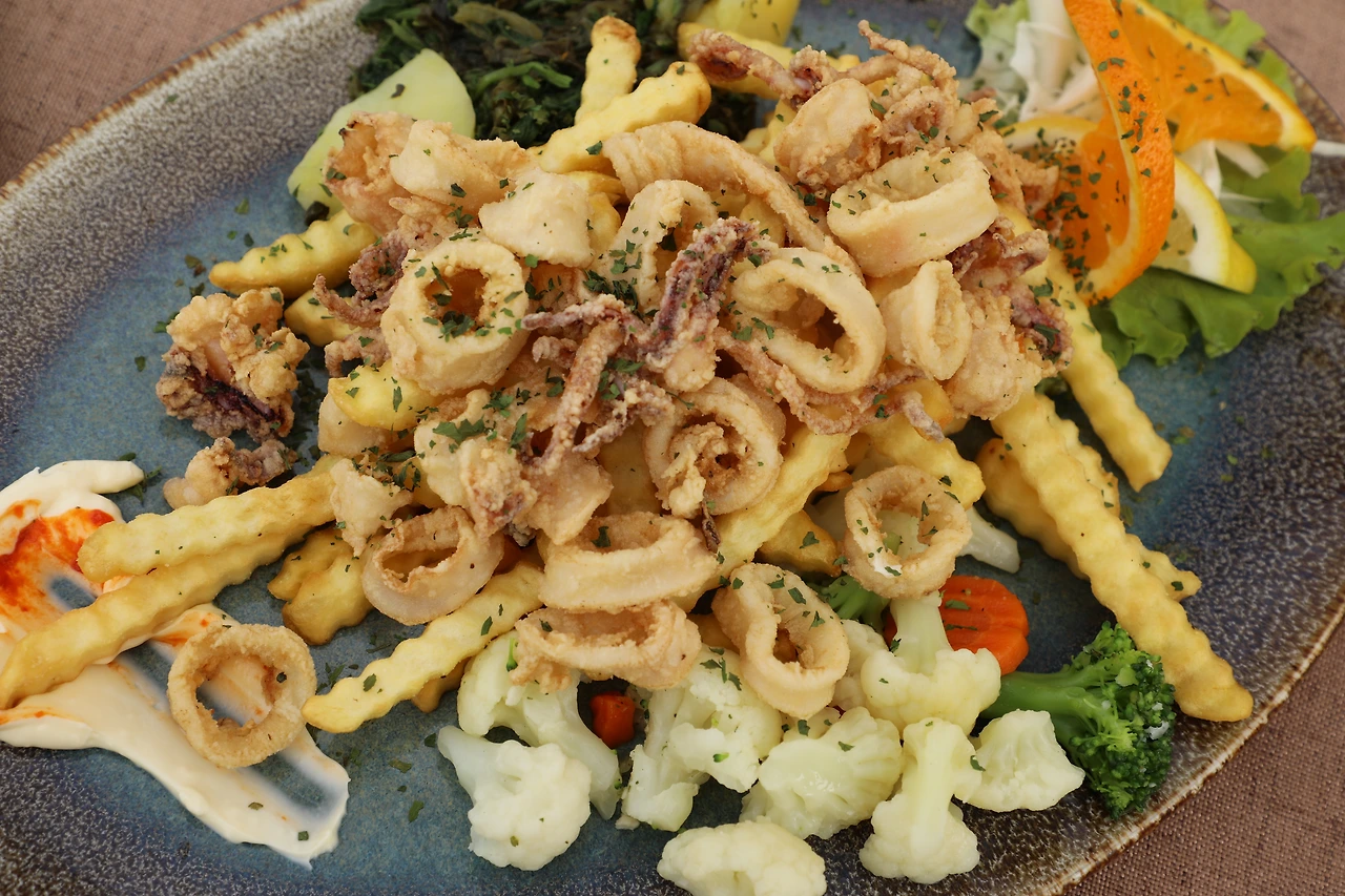 바다가 보이는 레스토랑에 들어가니 마침 메뉴에 깔라마리가 있어 음료와 함께 주문을 했다.