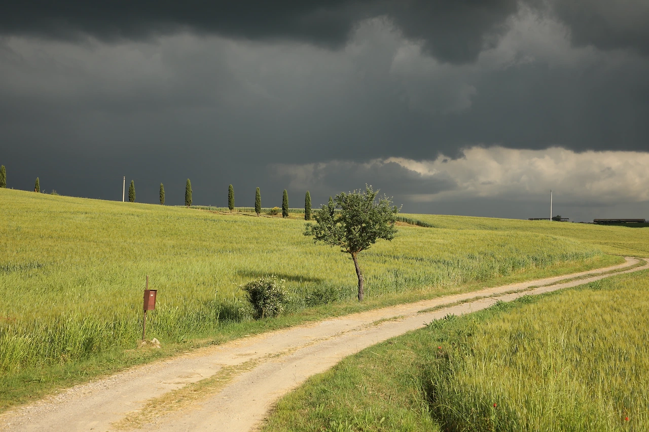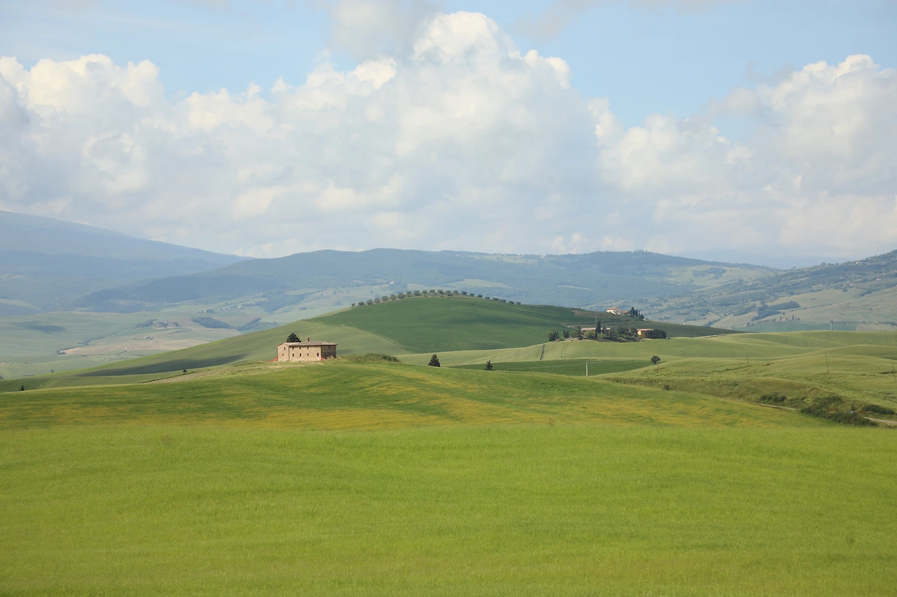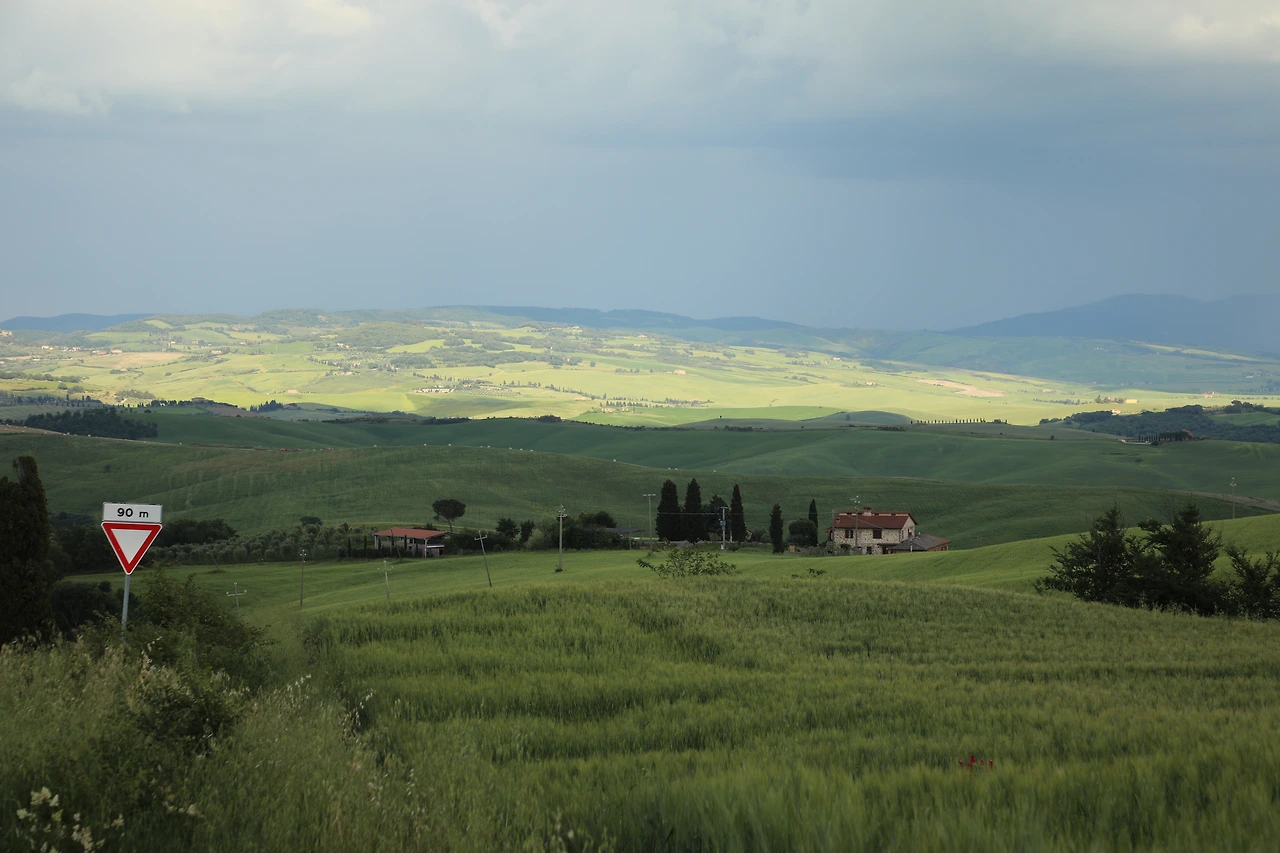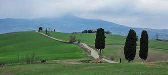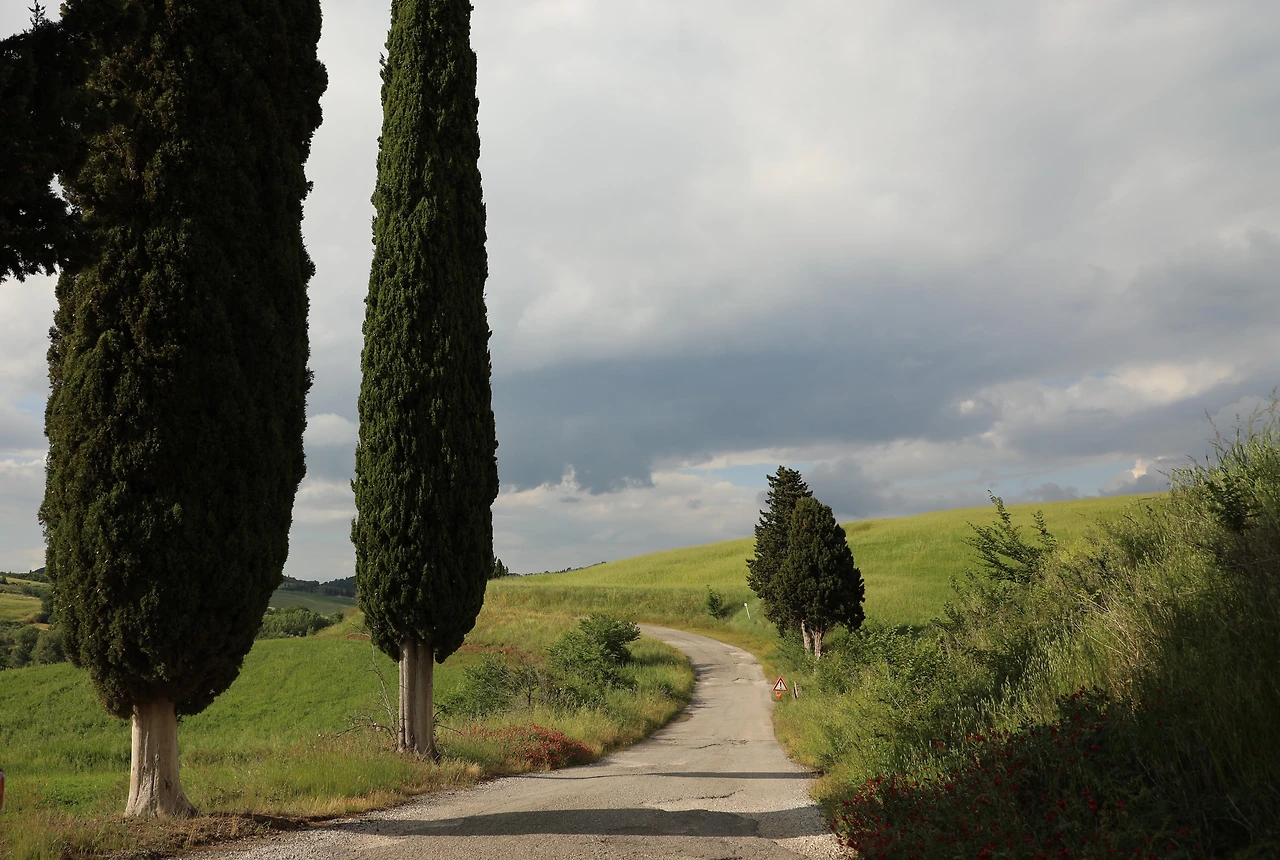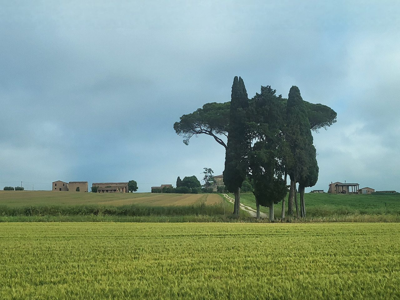 뭐라 말로 설명할 수 없는 크기의 하늘, 사람 얼굴처럼 크기와 모양이 다른 구름들, 정체를 알 수 없는 초록이 펼쳐진 구릉, 그리고 간간이 꽂아놓은 색연필 같은 사이프러스...