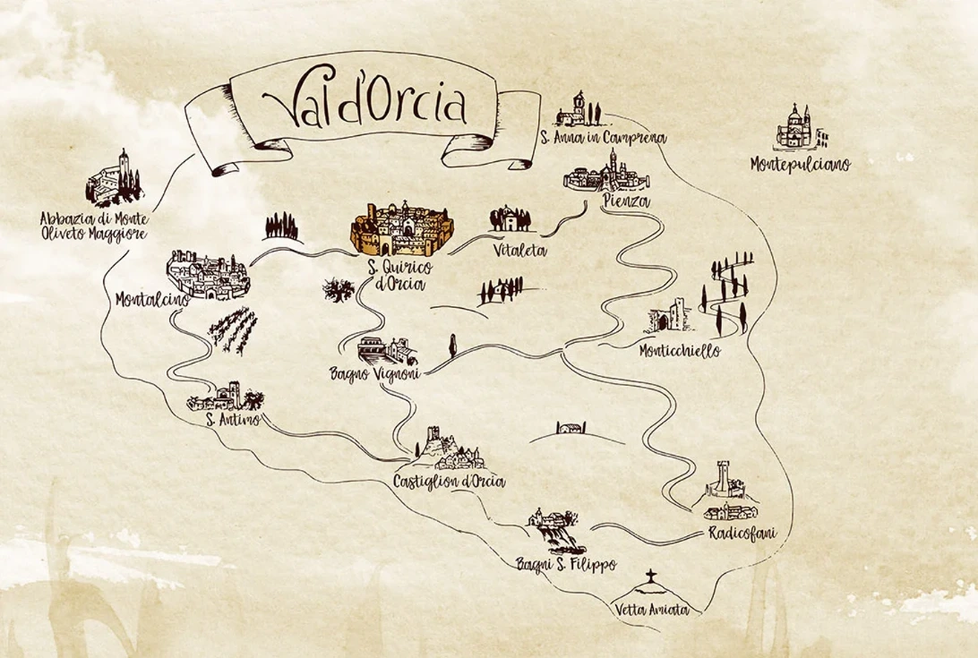그 외에도 산 퀴리코 도르차(San Quirico d'Orcia), 카스틸리오네 도르차(Castiglione d'Orcia)라는 지명도 있기에 도르차가 무슨 뜻일까 궁금했다.