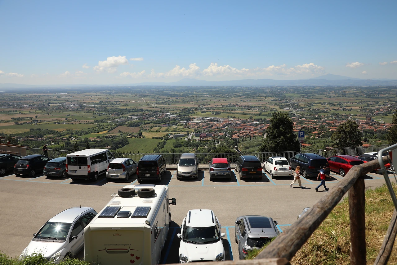 부온콘벤토의 성벽이 보이는 넓은 주차장에는 주차 정산기가 보이지 않았다.