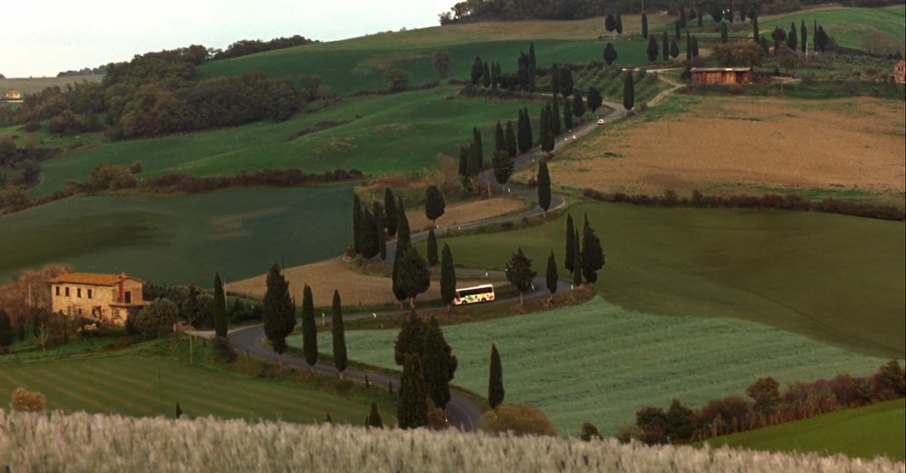 놀랍게도 비탈리타 예배당과 지그재그 사이프러스길(punto panoramico preses en zigzag) 장면도 나온다.