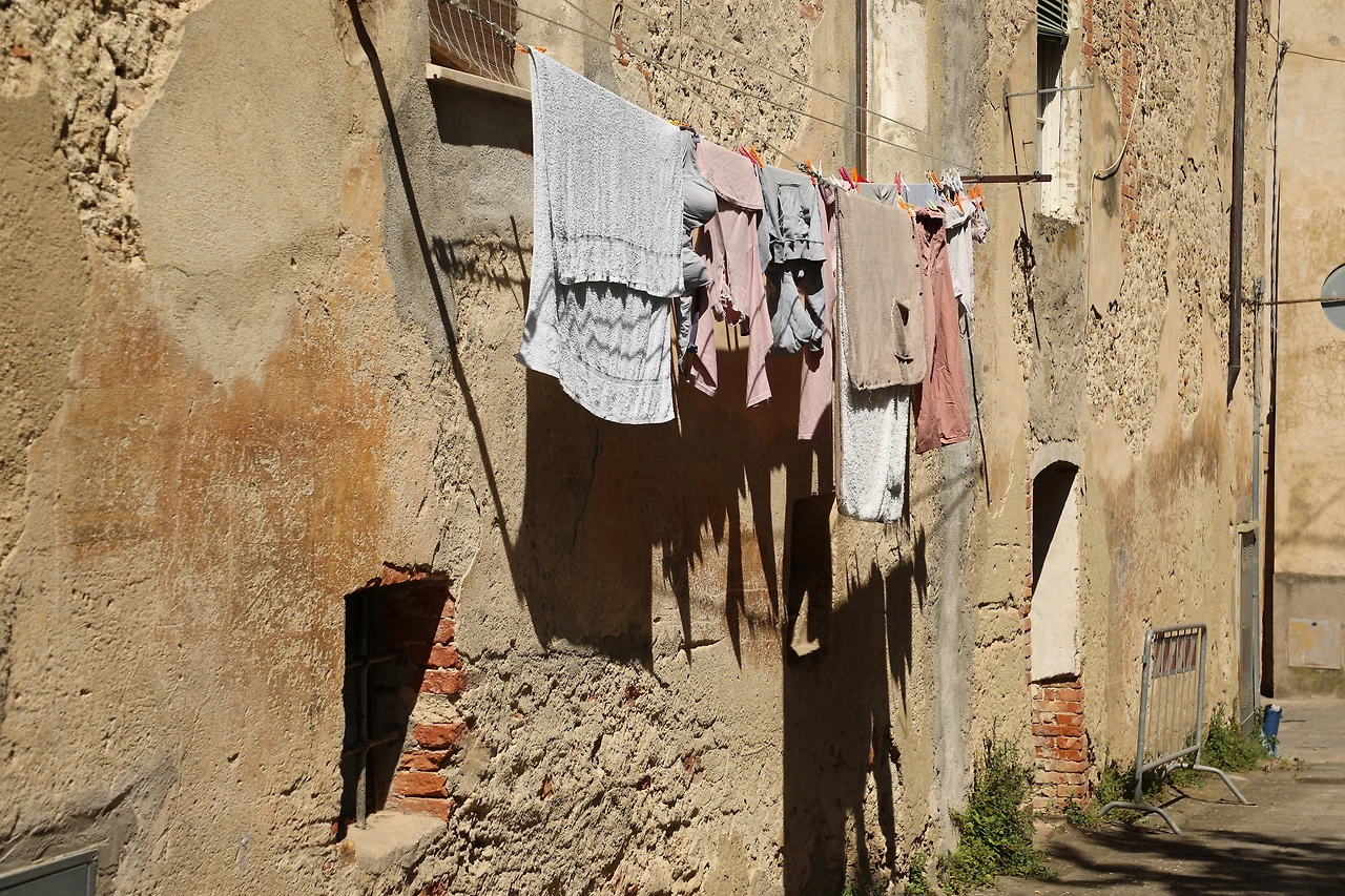 빨랫줄에 거침없이 걸려있는 빨래들,