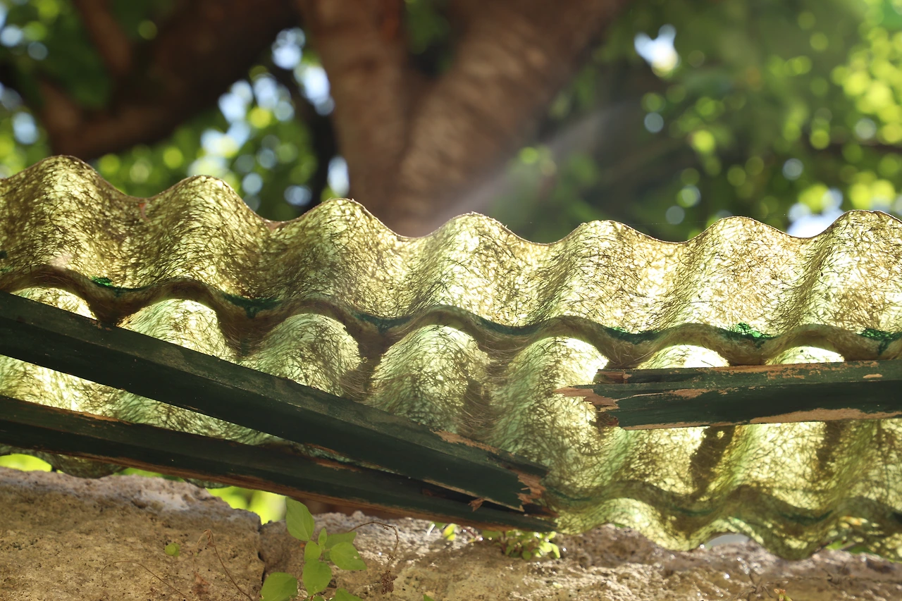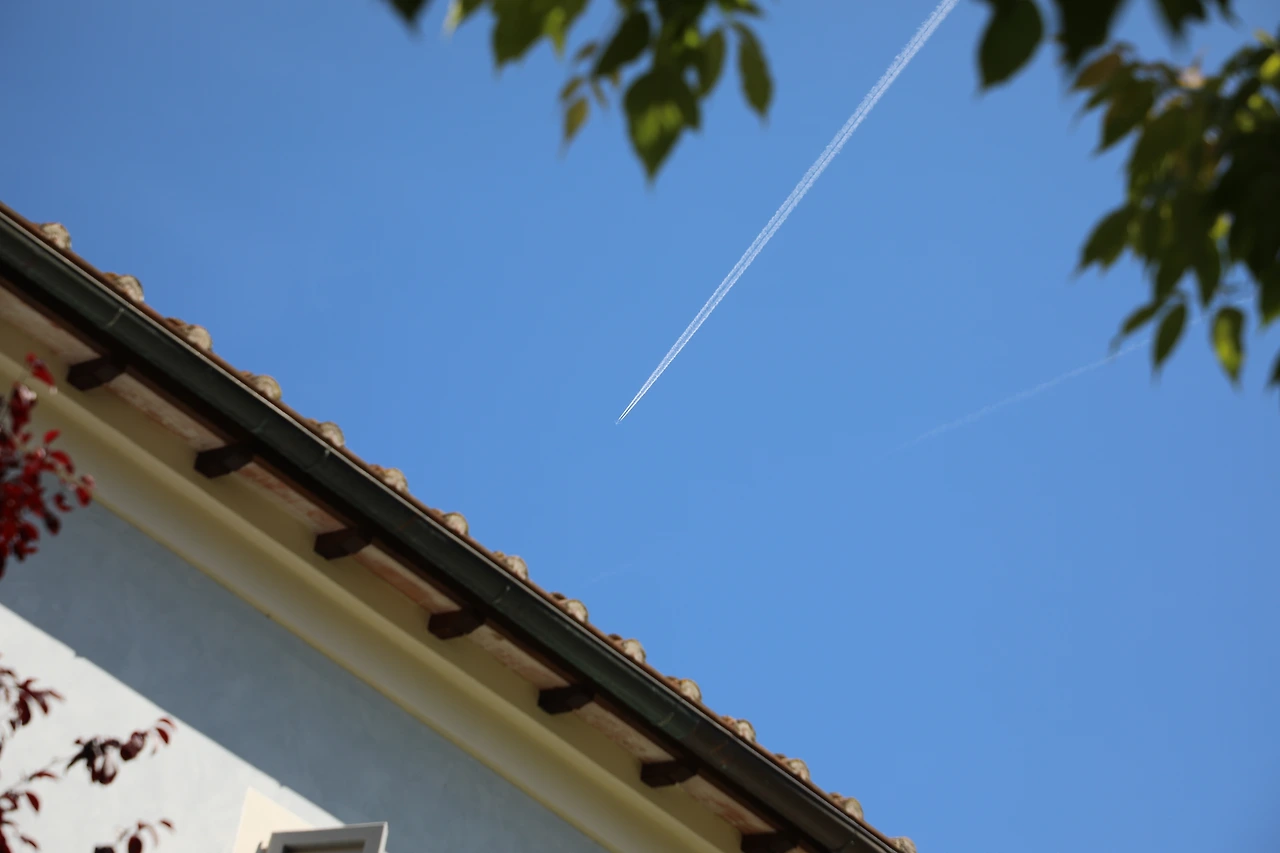 오래된 처마에 초현실파 화가의 그림처럼 끼어있는 푸른 이끼와 우연히 바라본 하늘의 비행운까지...