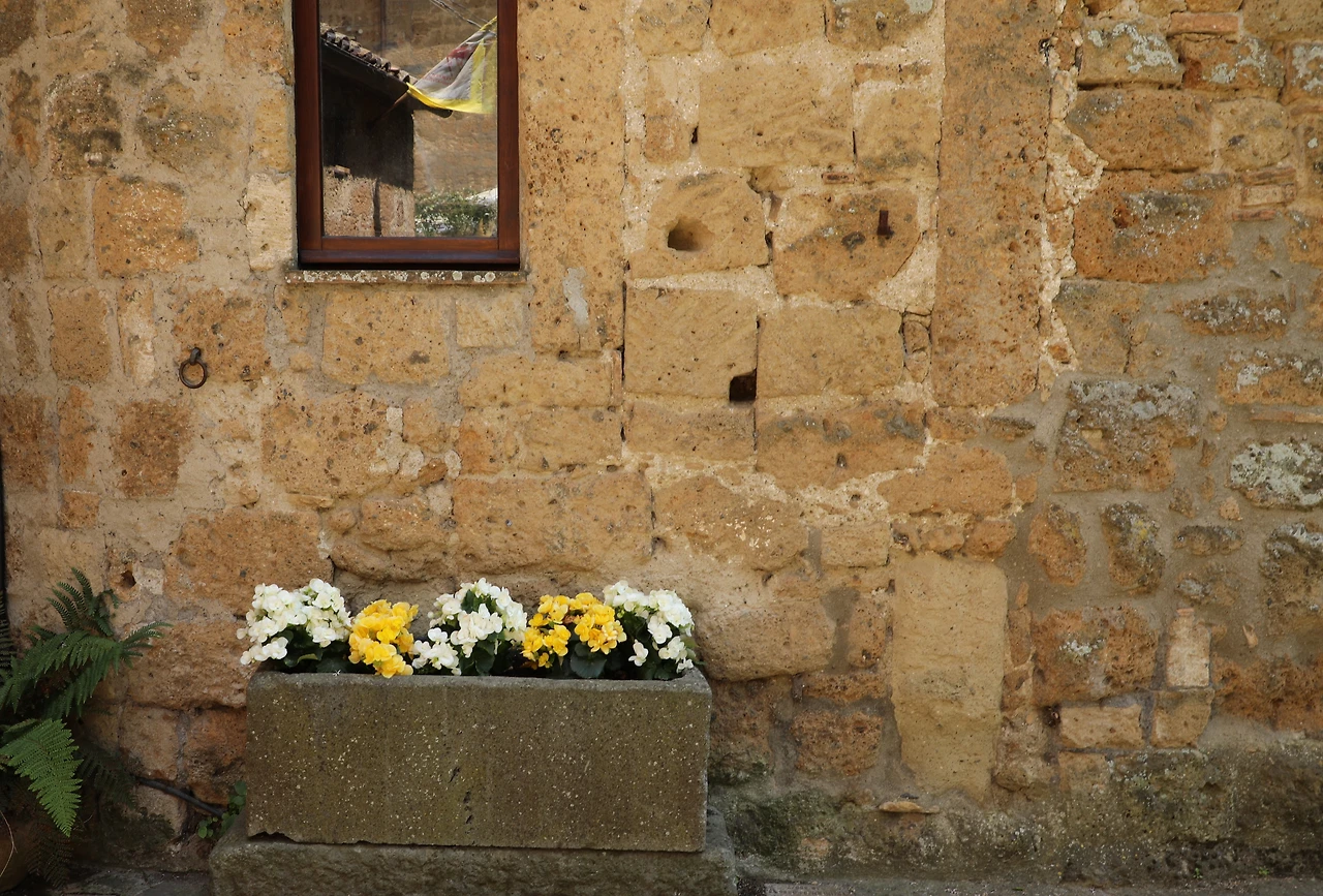 초록빛 아이비는 담벼락에 드리워있고 발코니를 가로지르는 화분에는 꽃들이 퍼레이드를 펼친다.