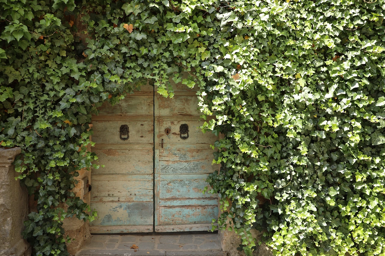 조용한 모퉁이를 돌면 낡은 나무 문이 보이지만 건물의 일부분은 무너져 내렸다.