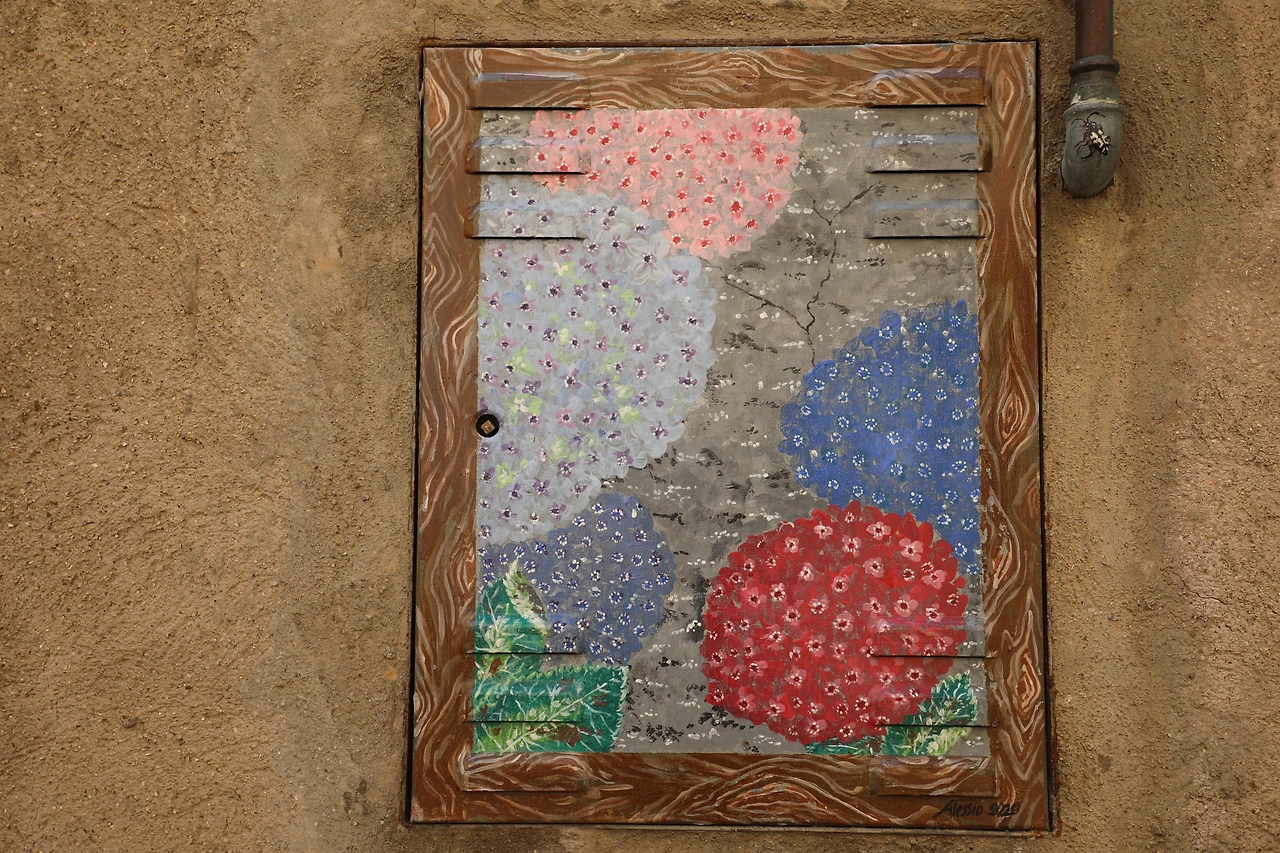 작년 피렌체 인근에 있는 마을 피에솔레에 갔을 때 가스 미터기를 덮고 있는 철재 커버에 그림을 그려놓은 것을 보았었다.