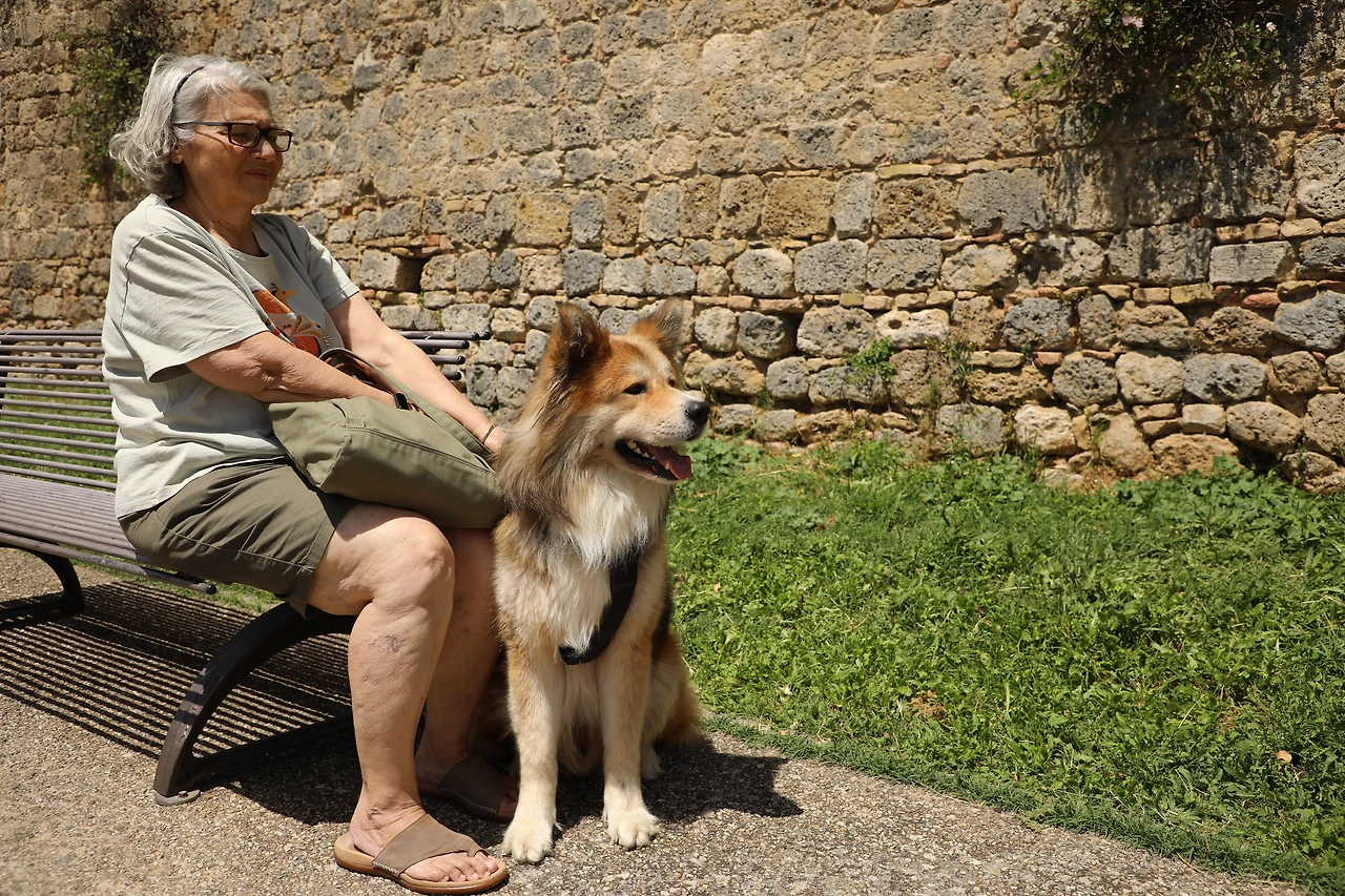 성문을 막 나섰는데 벤치에 개를 데리고 앉아있는 아주머니가 계셨다.
