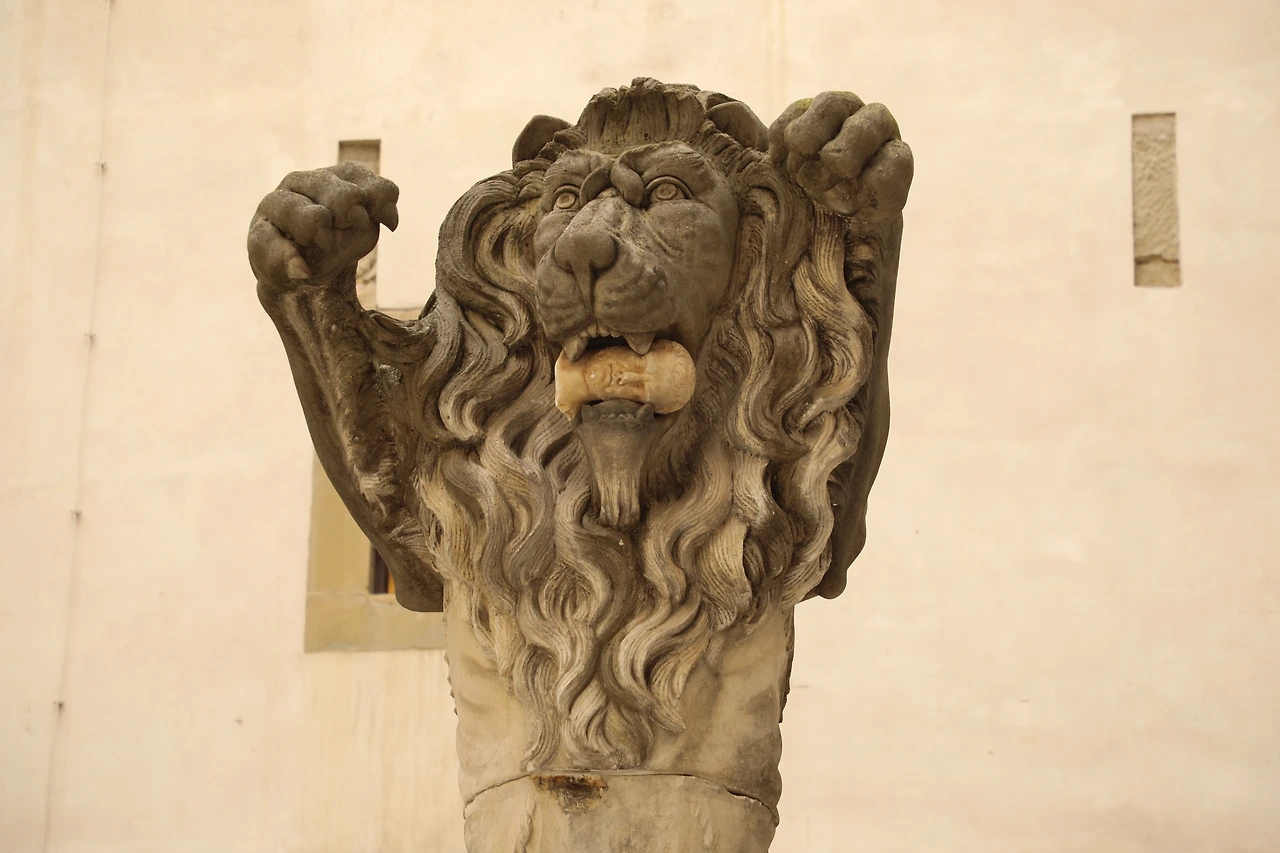 이 인상적인 조각품은 20세기에 난폭하게 날뛰는 사자가 오래된 받침대 위에 서서 기원전 2세기 로마인의 머리를 부수려는 의도를 담고 있는데 이곳에 영구 미술 컬렉션으로 자리 잡았다고 한다.(2023년 7월 24일)