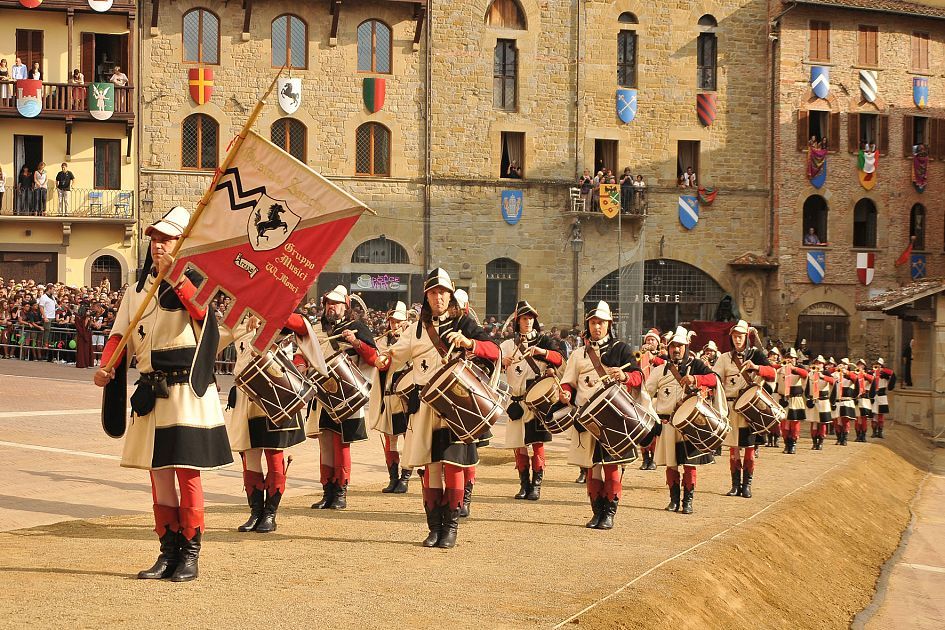 그것은 바로 아레초에서 매년 열리는 사라센 마상(Saracen Joust) 경기로 매년 6월 두 번째 토요일과 9월 첫 번째 일요일에 이뤄지는 지역의 전통 행사이다.