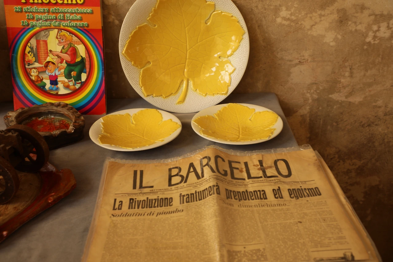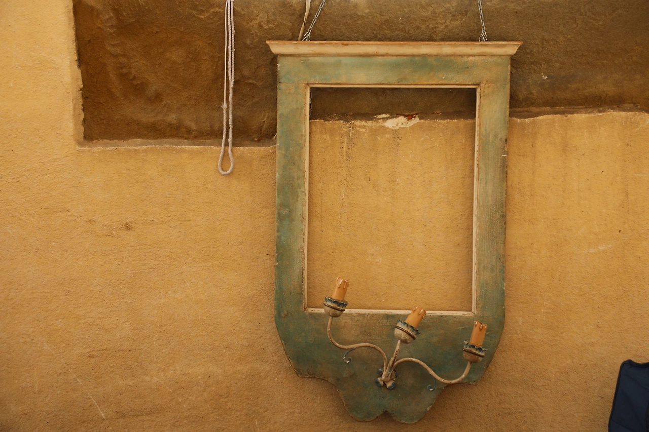 벽의 한쪽에는 오래된 무쇠솥과 올리브를 압착하는 도구로 장식했을 뿐 내부는 극히 심플하다.