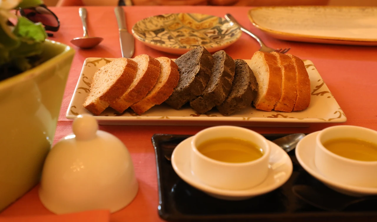 앙증맞은 뚜껑의 하얀 올리브 오일 그릇과 세 종류의 식전빵 맛은 이미 그곳의 음식이 훌륭할 거라는 기대감을 높이기에 충분했다.