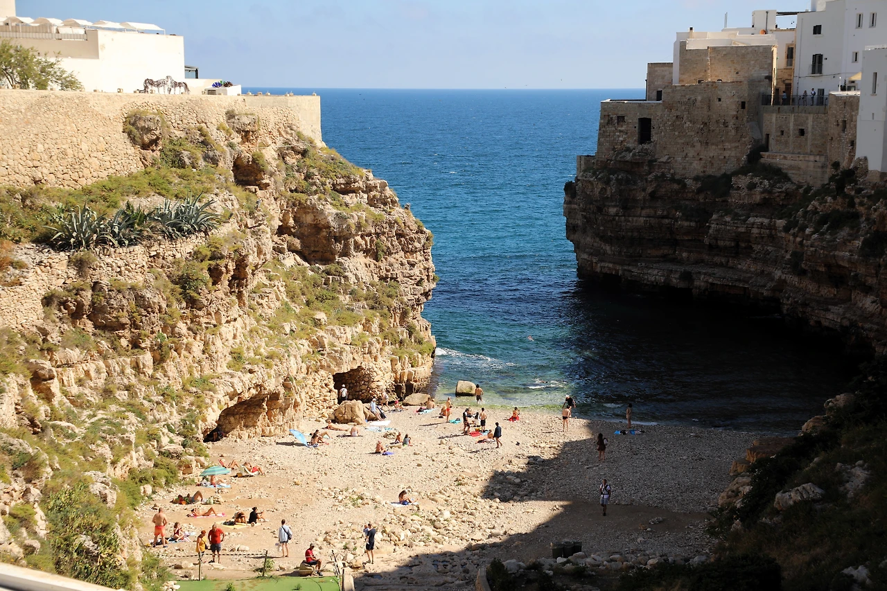 그중에서도 가장 인기가 많은 곳은 험준한 바위 위에 흰색 건물들이 줄지어 서 있는 폴리냐노 아 마레 아래쪽의 카라 포르토(Cala Porto), 또는 라마 모나칠레(Lama Monachile)라고 불리는 비치이다.