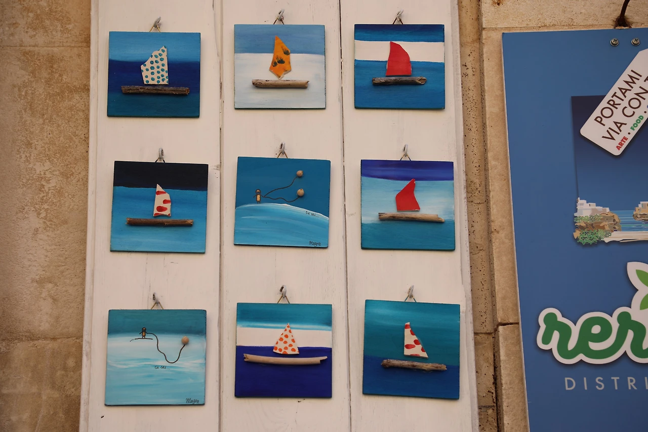 작은 나무 막대기는 배가 되고 세모의 돌조각에 색칠을 하여 돛을 만든 기념품이 앙증맞고