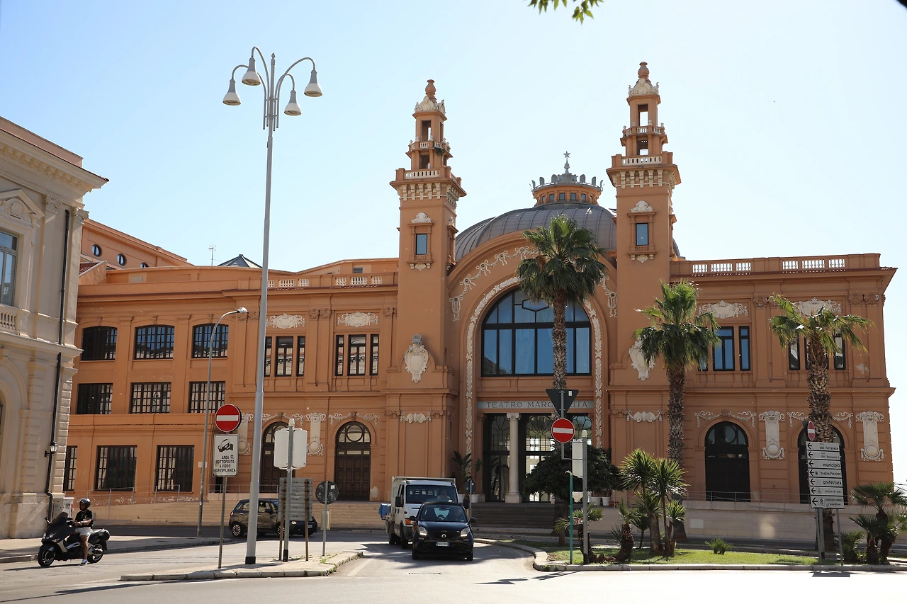 이 극장은 바다에 기둥을 세우고 철근 콘크리트로 지어진 바리 최초의 건물이다.