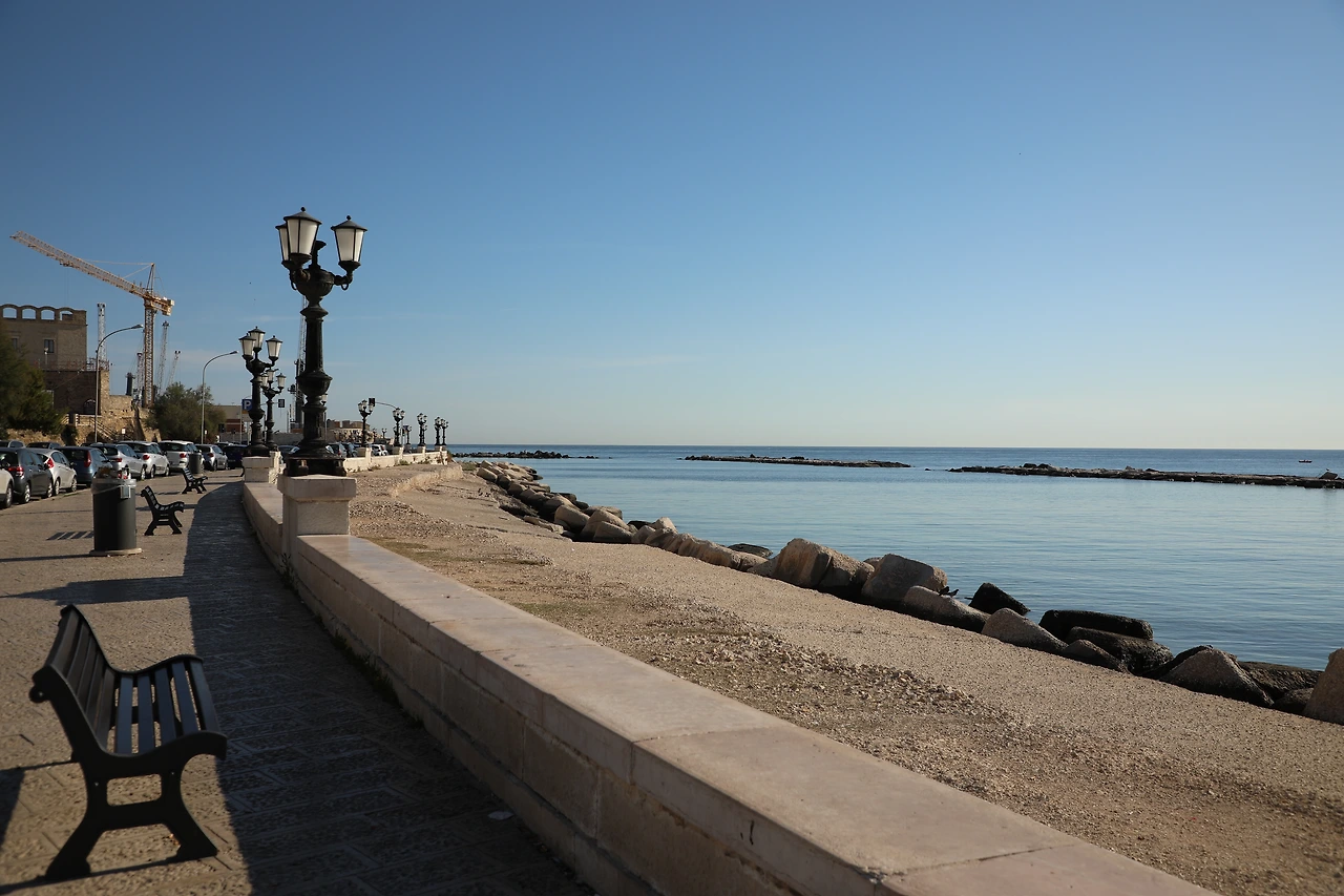 가로등이 보이는 아치문으로 나가면 룽고마레(Lungomare)라는 해안 산책로를 만난다.