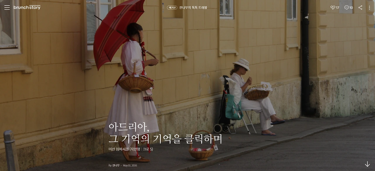 2016년 5월 1일, 필자는 브런치에 '아드리아, 그 기억의 기억을 클릭하며'라는 제목의 글을 썼습니다.