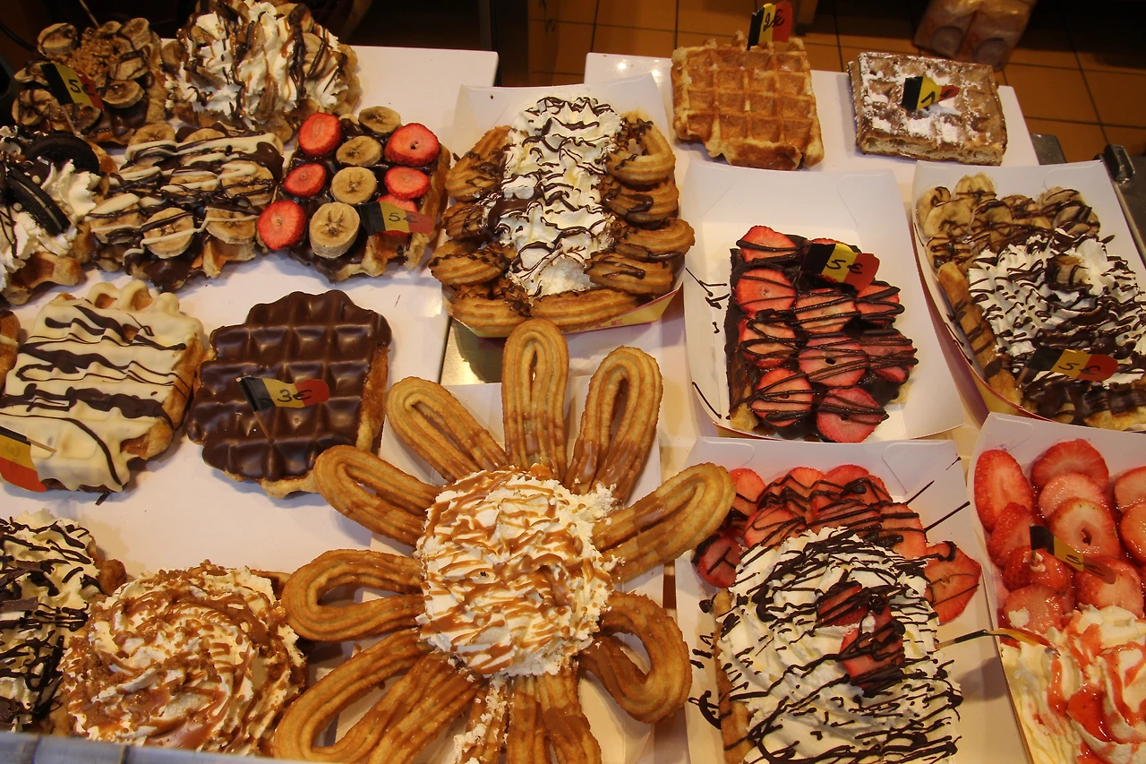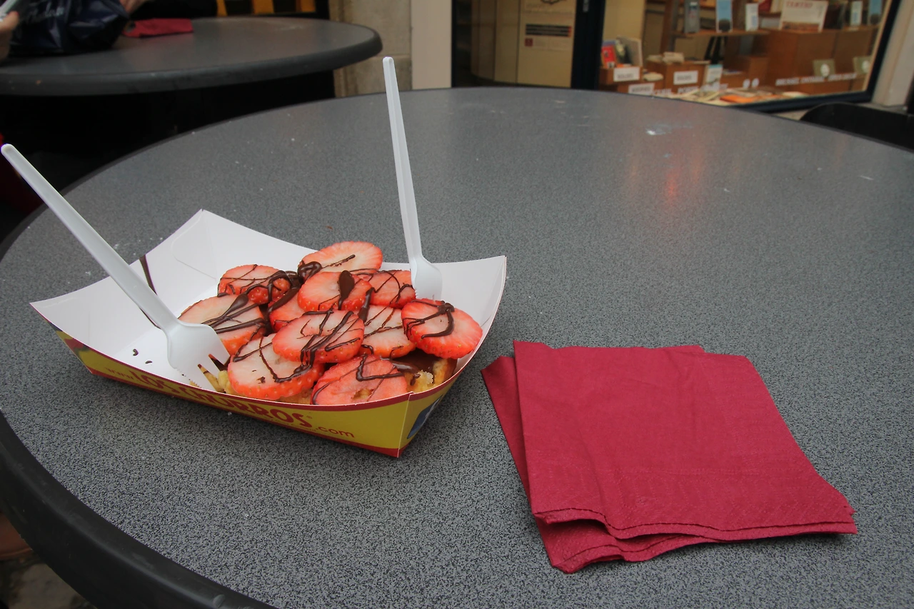 이번엔 와플이다. 대체 먹을 것들이 끊임없이 등장한다. 와플의 종류가 어마어마하다. 가장 단순해 보이는 딸기와 초코시럽이 뿌려진 와플을 길거리 테이블에서 먹었다. 달콤한 감칠맛이 그만이다.