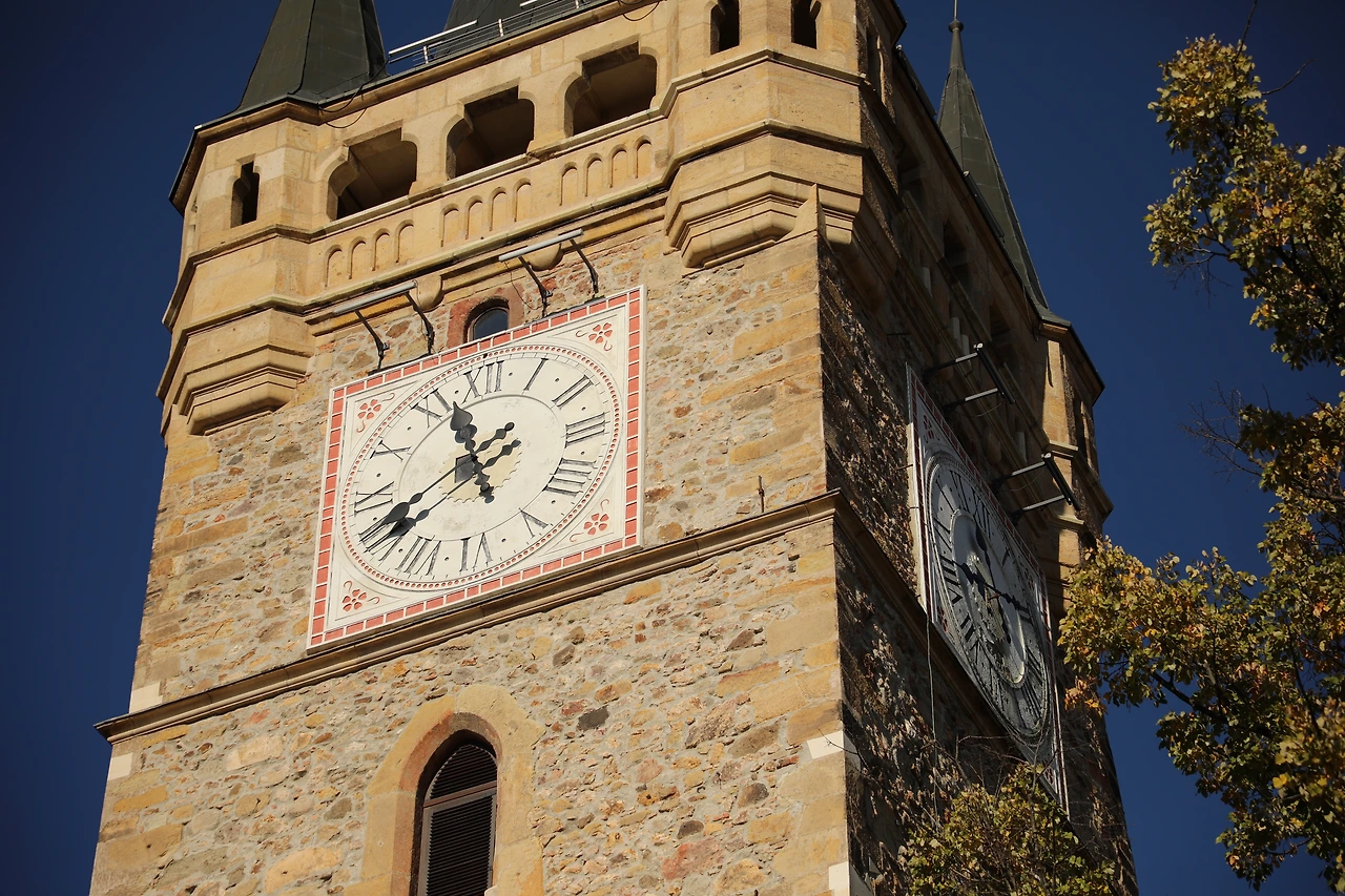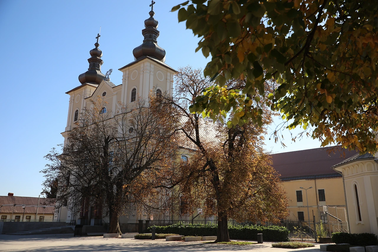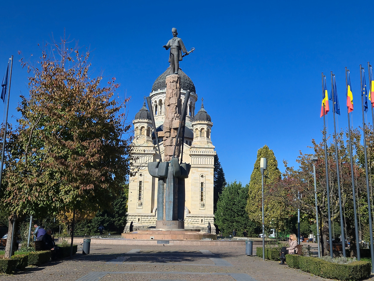 성당 앞에는 트란실바니아의 변호사이자 혁명가인 아브람 이안쿠 동상이 서 있는데 그곳 광장 이름도 이안쿠 광장입니다.