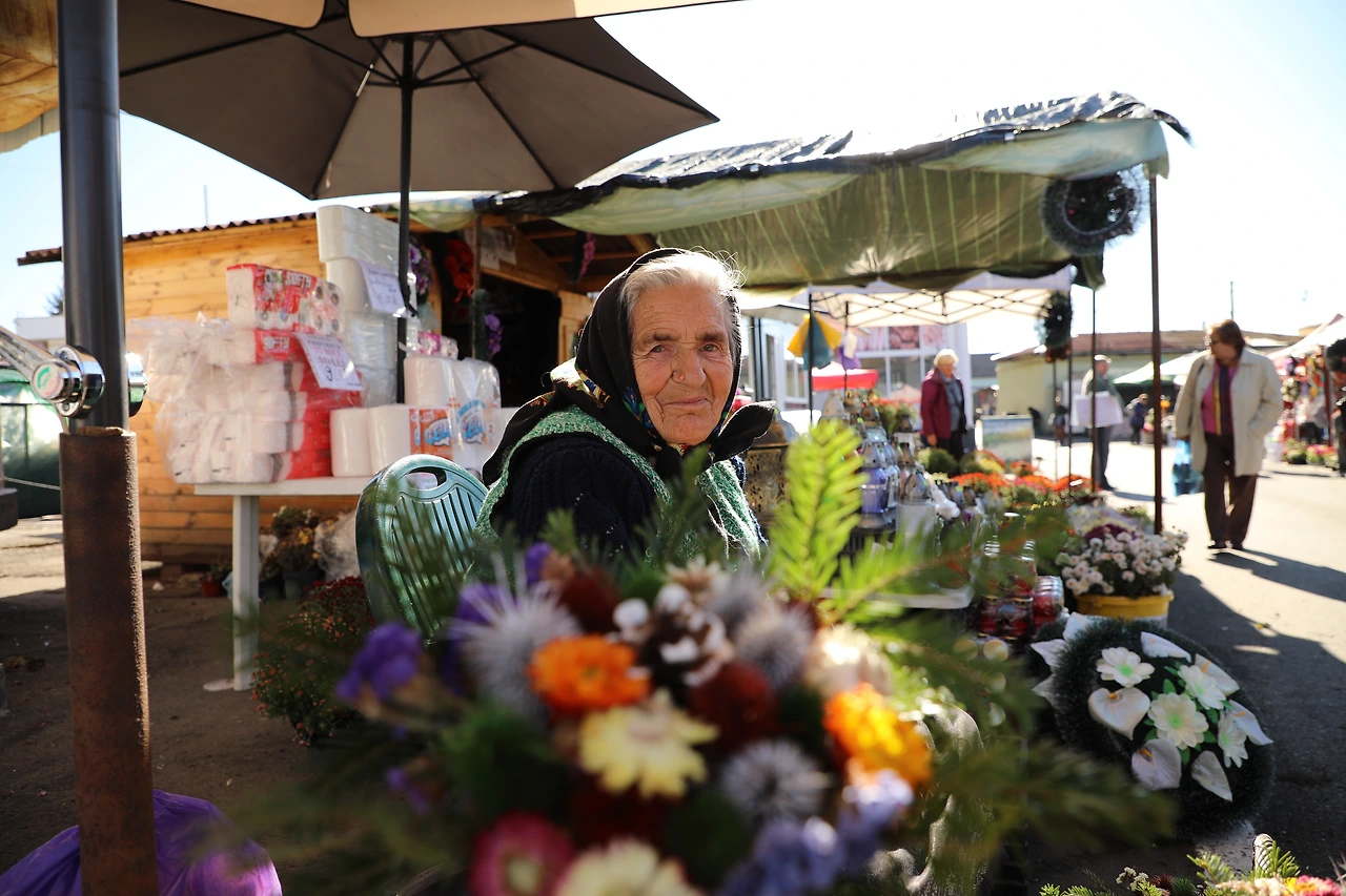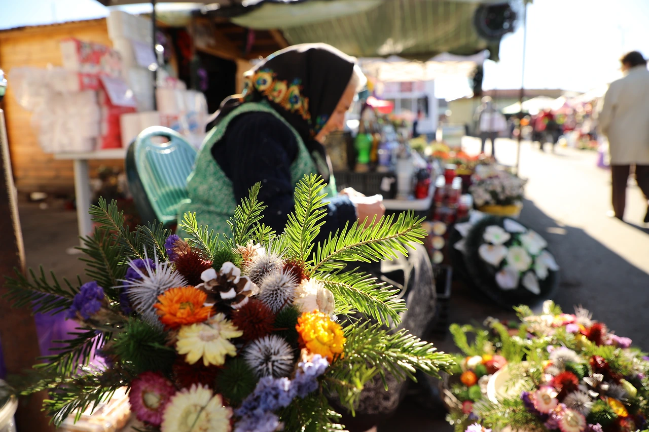 비슷한 모양의 꽃다발을 파는 분이 여럿인데 그중 유독 눈에 띄는 할머니가 계십니다.