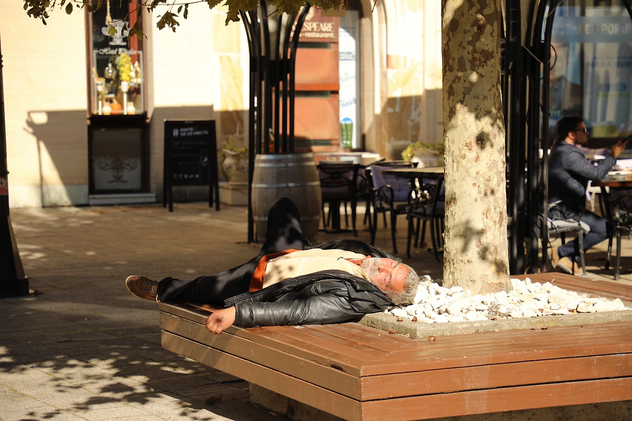유화 느낌 물씬 풍기는 낡은 집과 화가들의 조각상이 있는 광장, 숙취 때문인지 아무렇게나 쓰러져 잠이 든 아저씨의 모습이 낭만적이네요.