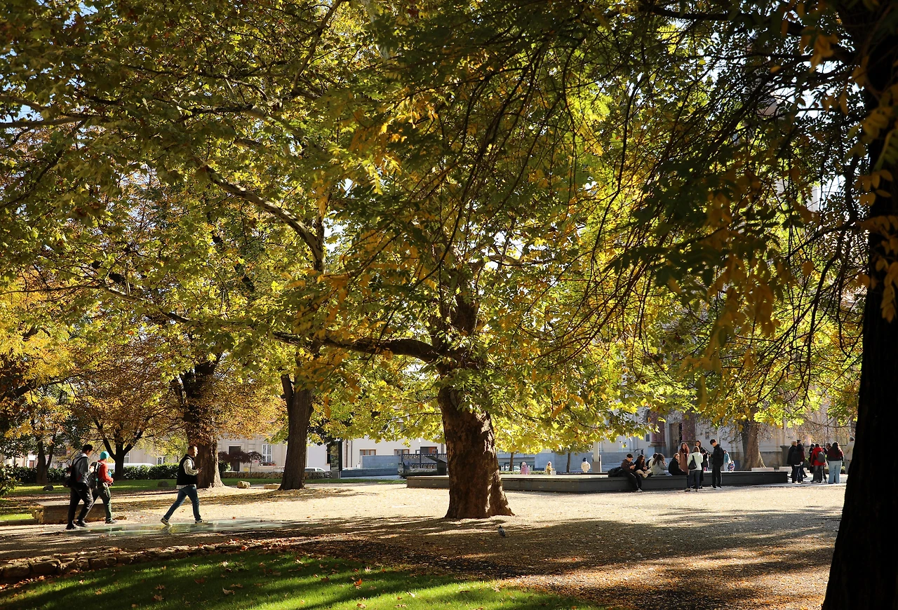 세인트 스테판 타워 근처에는 아름드리나무들이 햇빛을 받아 근사한 자태를 드러냅니다.